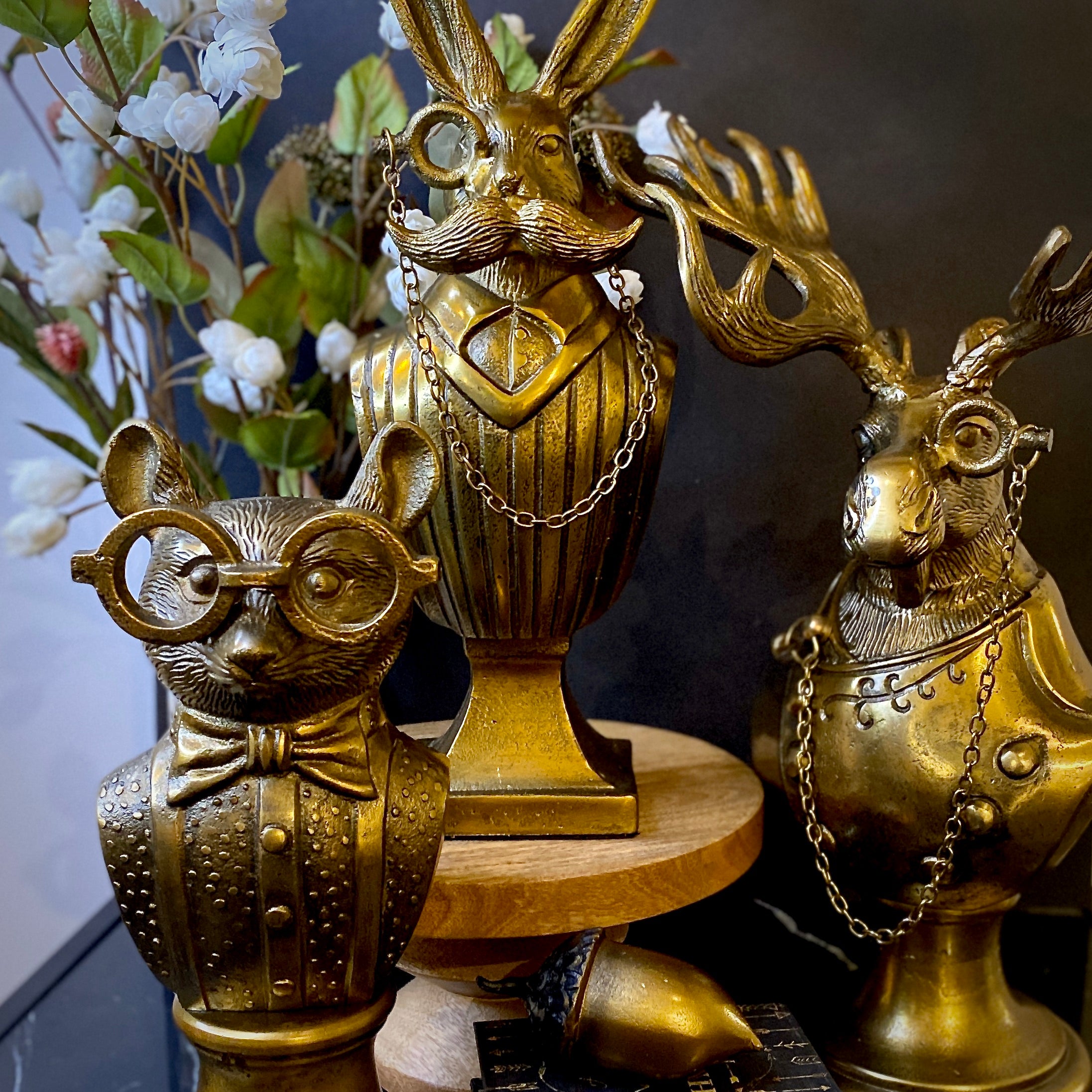 In a modern minimalist setting, Eric and Eloise pieces can serve as whimsical focal points. Their playful nature adds warmth and personality to the clean lines and simplicity of minimalist decor. For instance, a single Eric the hare bust with his charming monocle on a sleek console table can create a delightful contrast.