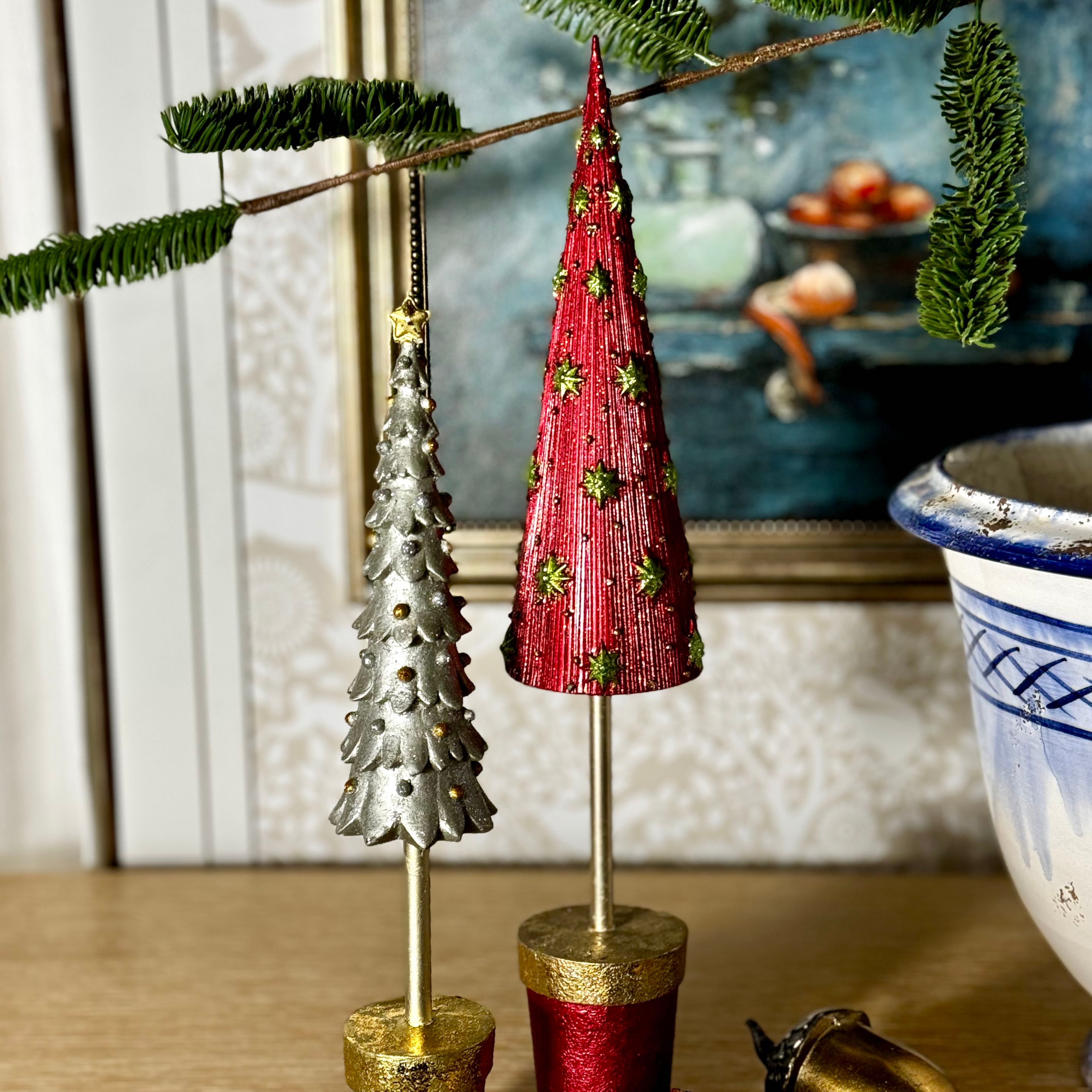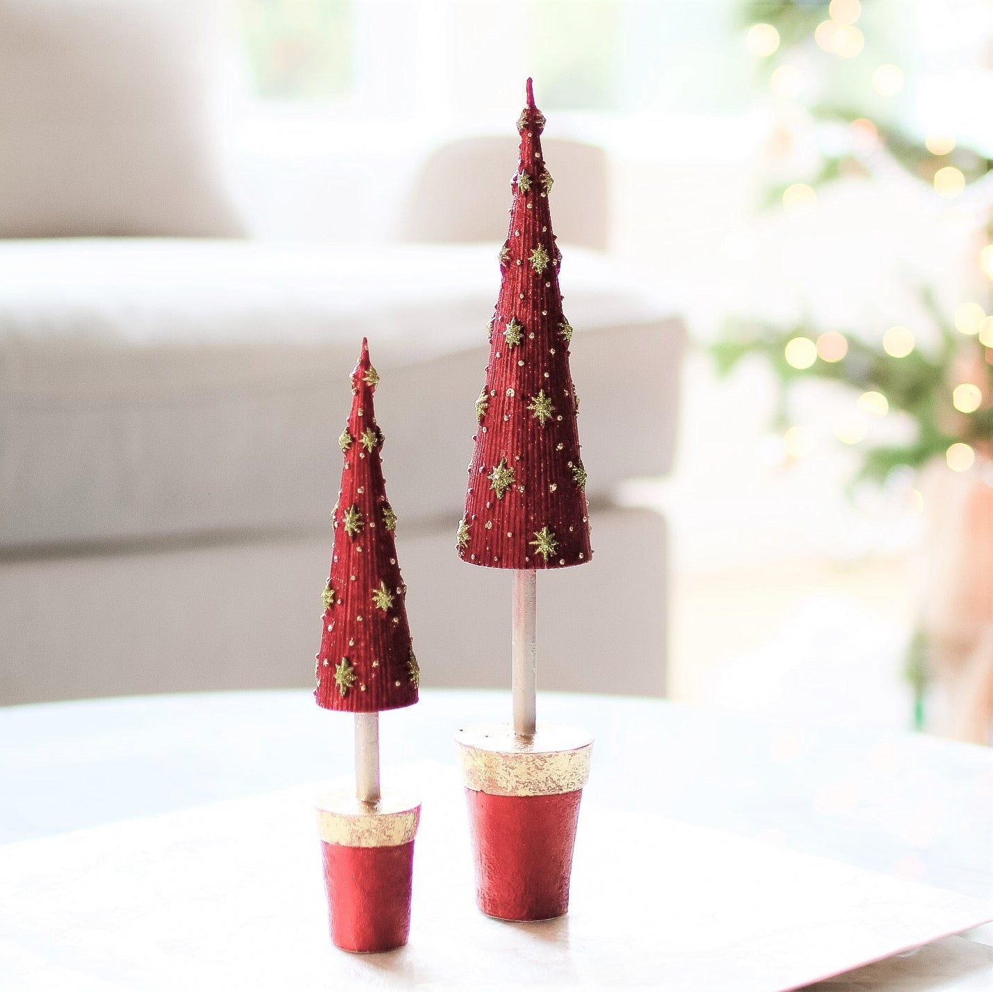 Elevate your holiday decor with the Red Starlight Topiary Tree, measuring 1.5"Wx17"H. Its slender design is perfect for holiday tables and thin mantels, and when grouped together, creates a statement of sophistication. The vibrant contrast of gold and red against the lush greenery embodies luxury and exclusivity.