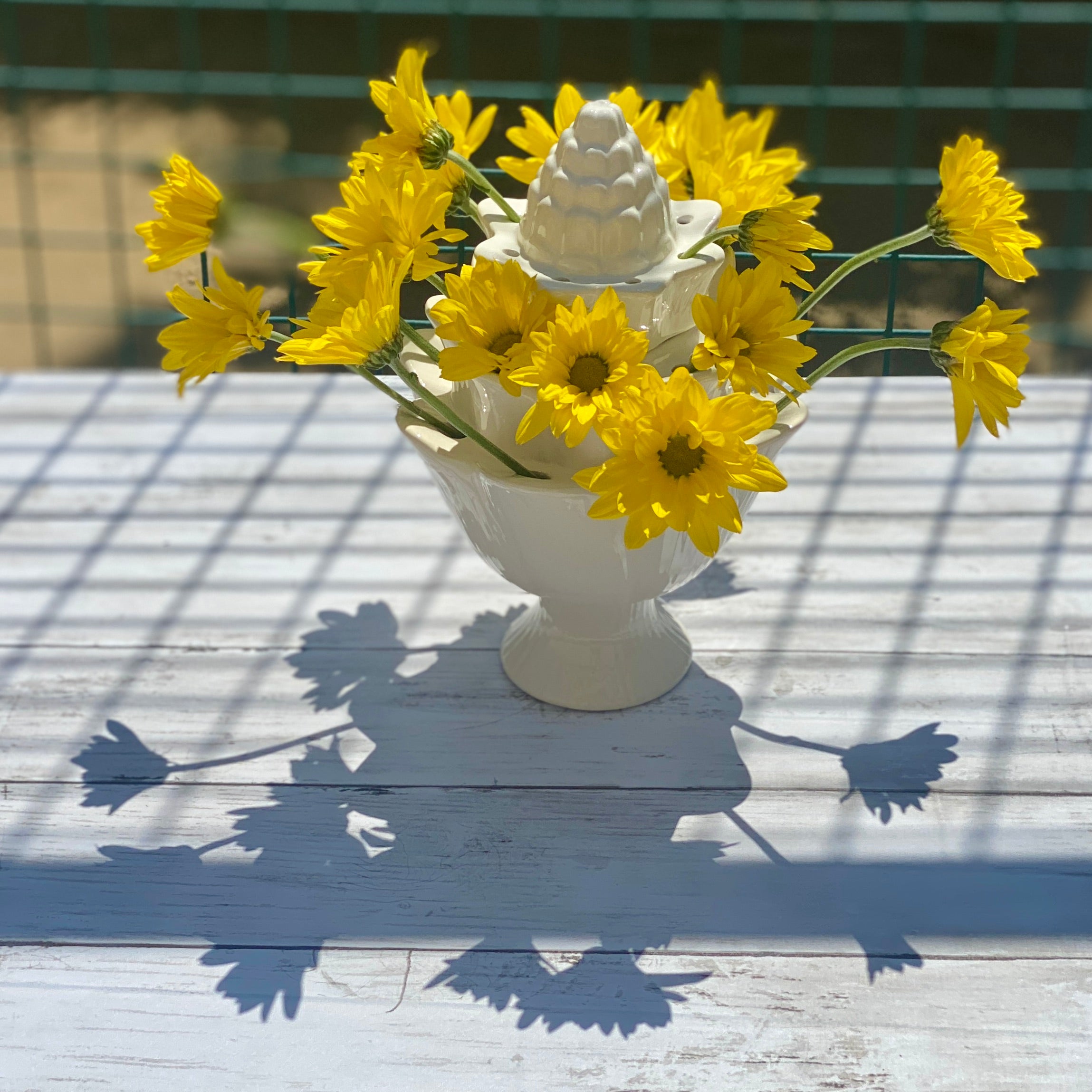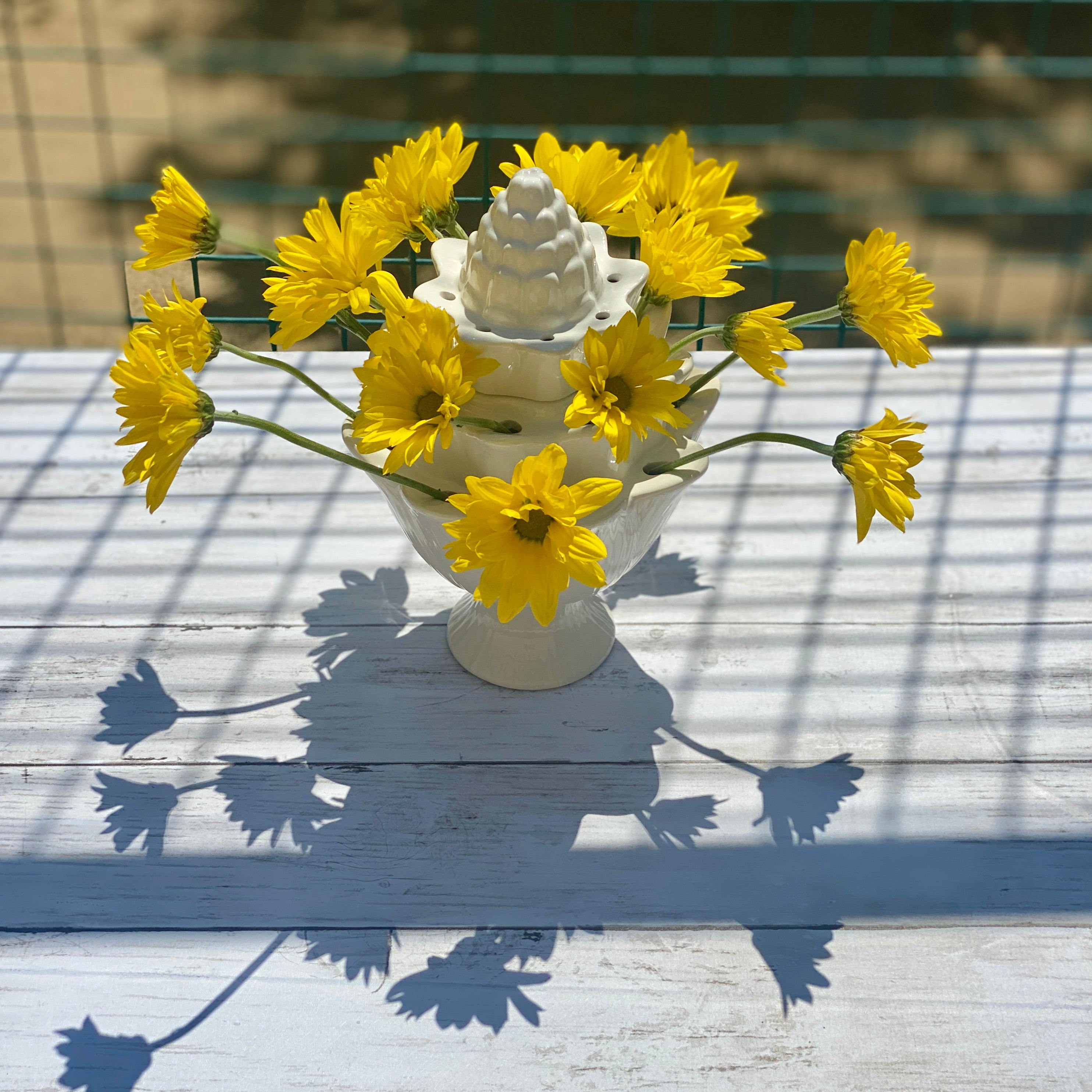 Bring a touch of spring to your home all year round with this beautiful white artichoke tulipiere! Not just for tulips but for all your long stem flowers. Create beautiful flowers arrangements on the fly. Its classic ceramic design and white finish provide a fresh, inviting look, adding elegant charm to any room. 9.25"Hx6.5"W
