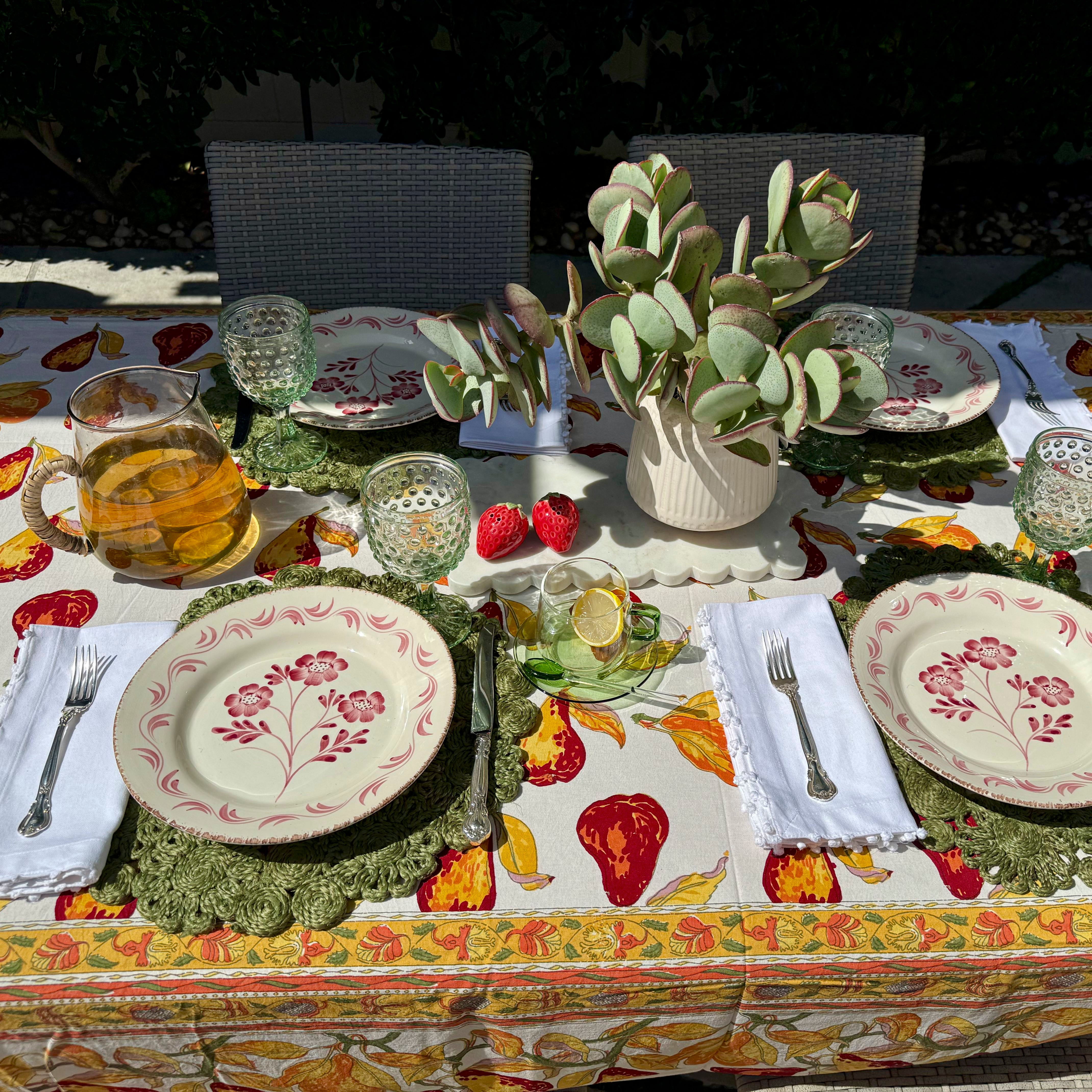 Indulge in the exotic essence of our Daisy Jute Green Placemats - Set of 4, taking your dining experience on a journey around the world. These placemats effortlessly embody beauty, sophistication, and simplicity, elevating your table spreads. Hand-woven from natural Jute fiber, their scalloped floral design adds a touch of whimsy to your tablescape. The hand on these is surprisingly soft and we love to layer with placemats with tablecloths are extra texture and pattern on the table. 15" Round. Set of 4.
