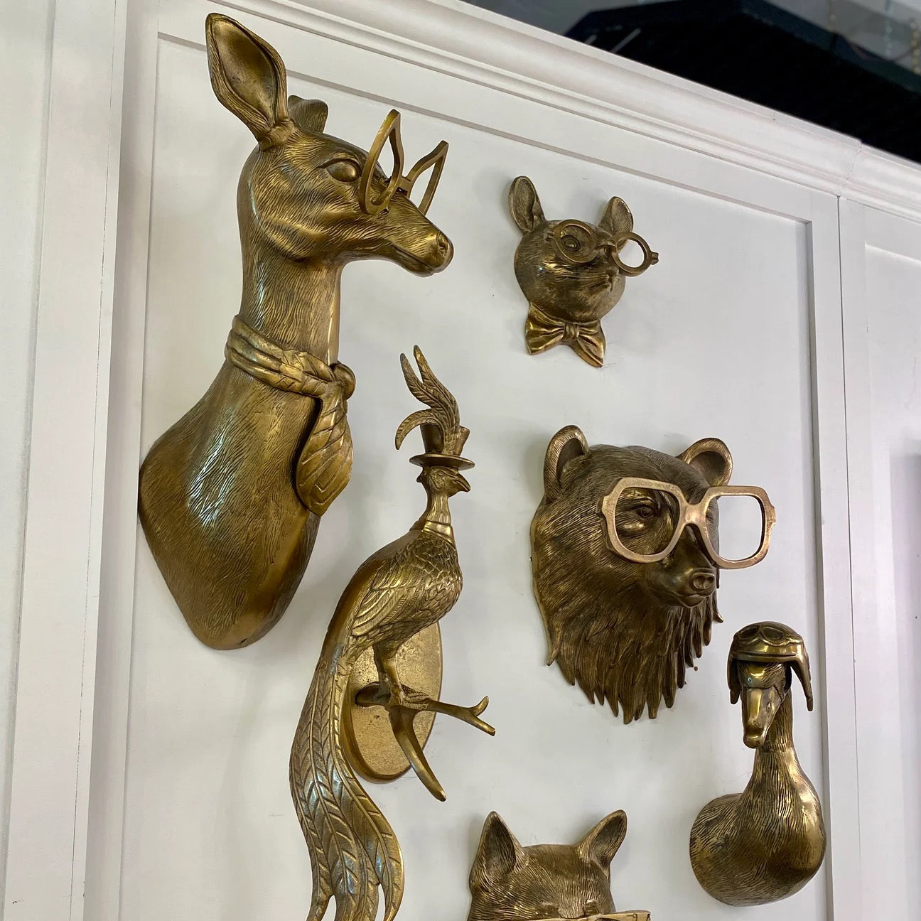 Hiemstra's path from the pages of her "Eric and Eloise" series to creating these bronzed aluminum vintage brass finish animal head wall mount sculptures showcases her versatile talent. Each sculpture, including the Frankie the Stag wall mount, Eric the Hare wall mount, and Eloise the Fox wall mount, is imbued with the essence of her artistic narrative, making them unique pieces of metal wall art to hang on any wall.