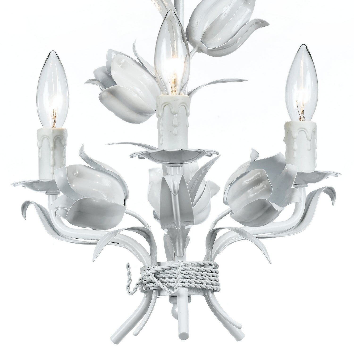 The Sidney three Light Chandelier in White blends vintage-inspired details with modern flair. Boasting a whimsical openwork metal frame adorned with delicate floral details, this chandelier elevates a classic design with its timeless elegance, making it perfect for any space.