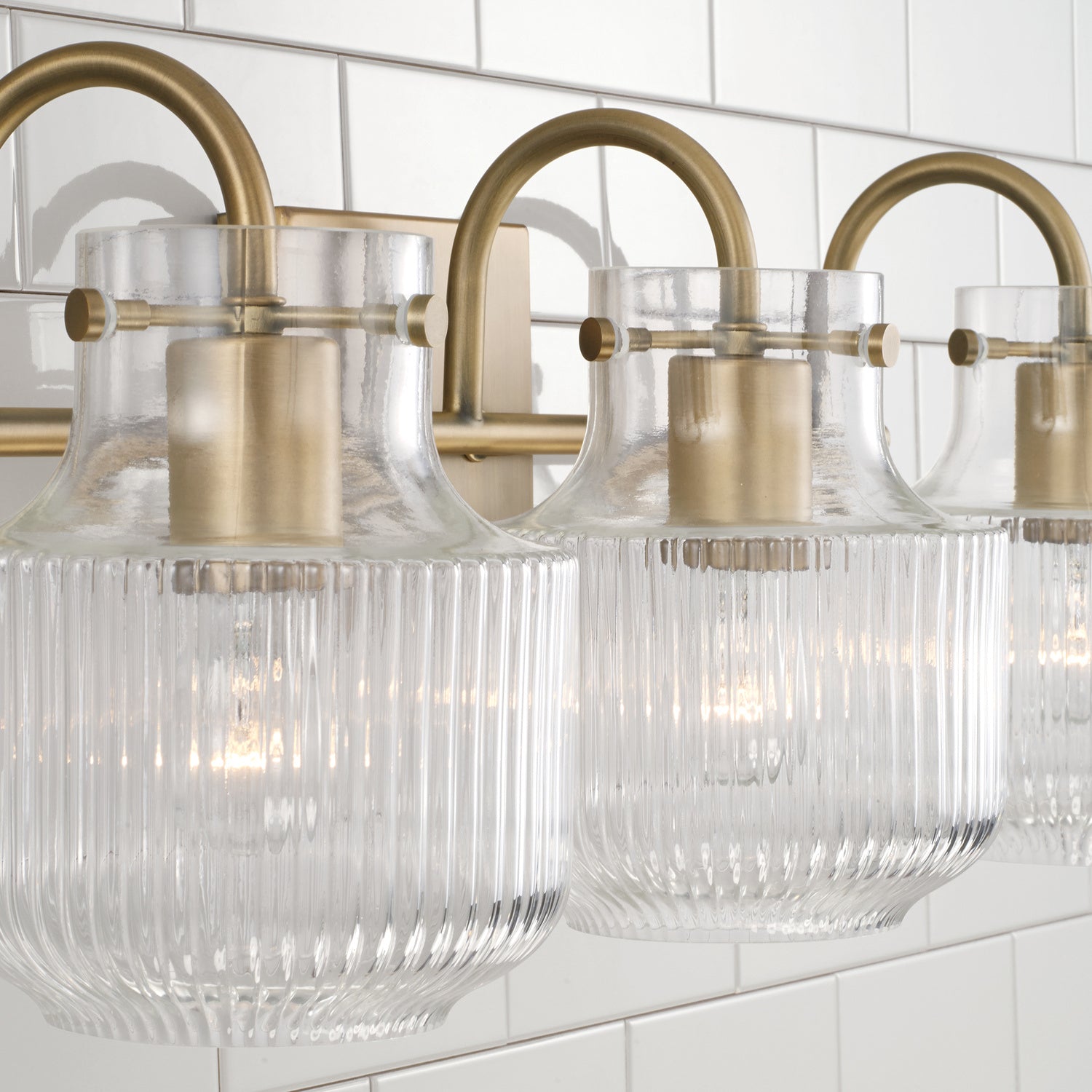 The Menlo Three Light Vanity in Aged Brass is a classic piece with modern appeal. Featuring a brass finish and fluted glass, this vanity light adds a touch of sophistication while exuding a timeless quality. Ensure your bathroom lighting is always extraordinary with a light that provides both form and function.
