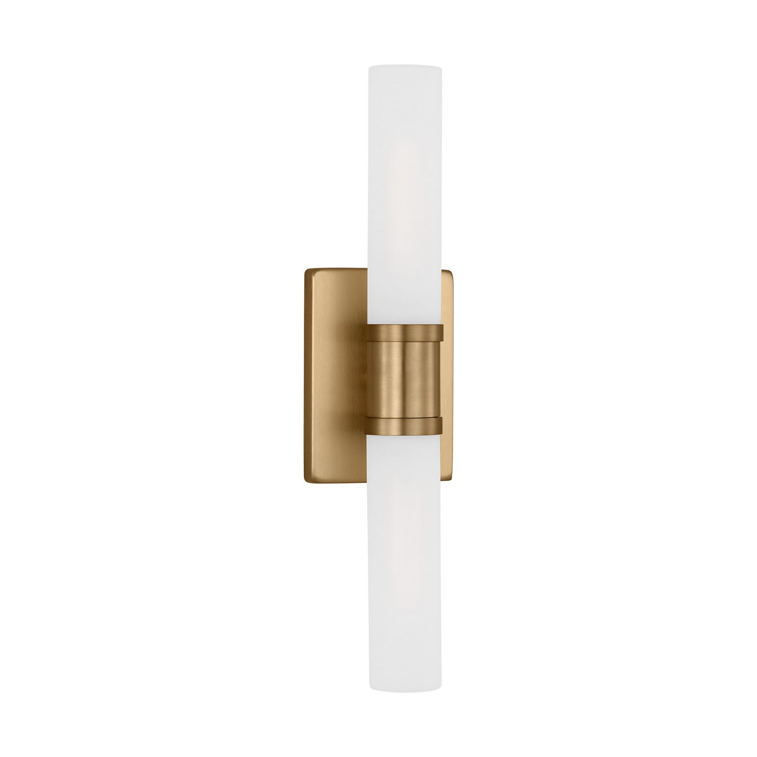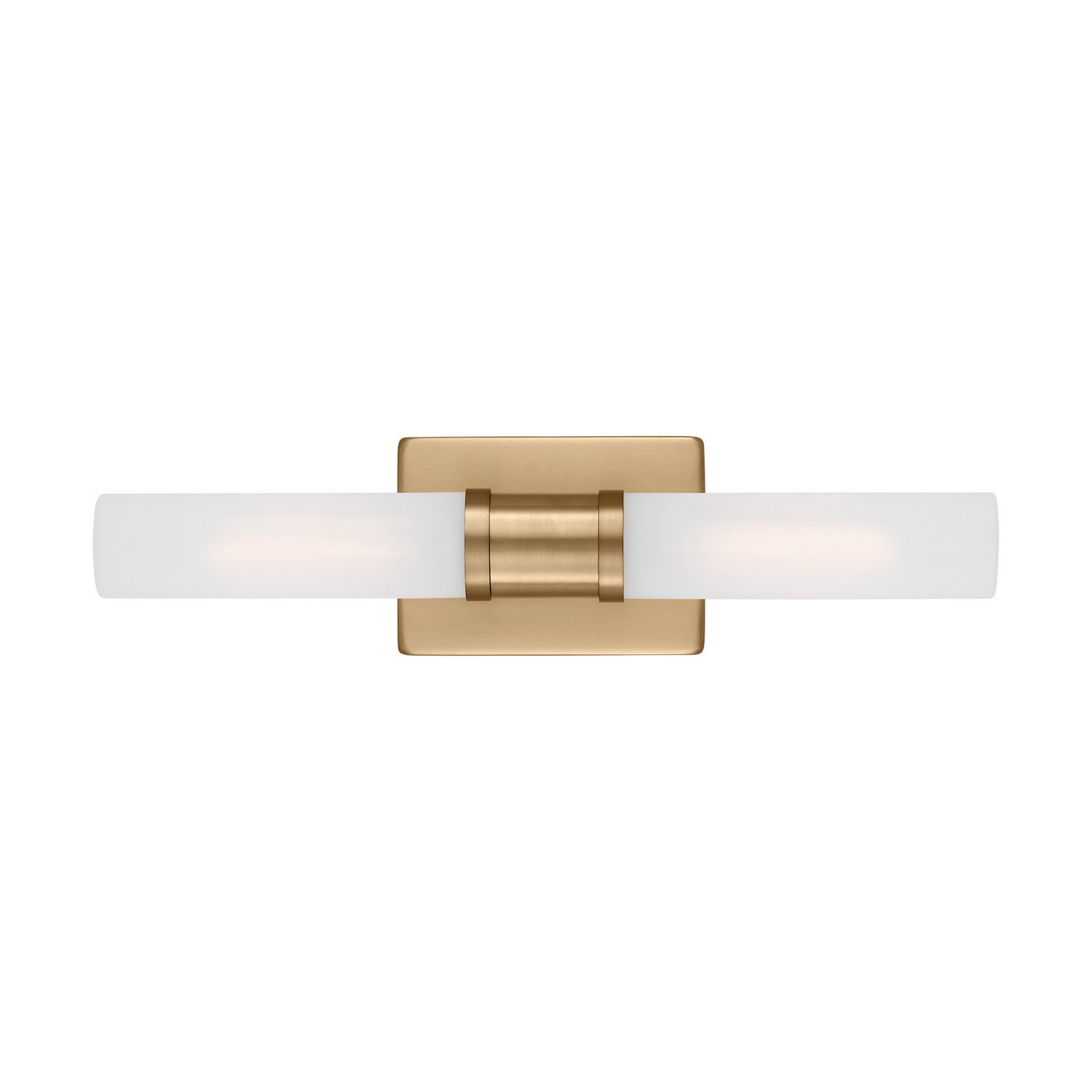 Sleek and modern, this 2-Light bath series pairs a square backplate with tubular etched white opal glass shade. The Sea Gull Collection Keaton two light vanity fixture in Satin Brass provides abundant light for your bath vanity, while adding a layer of today`s style to your interior design.