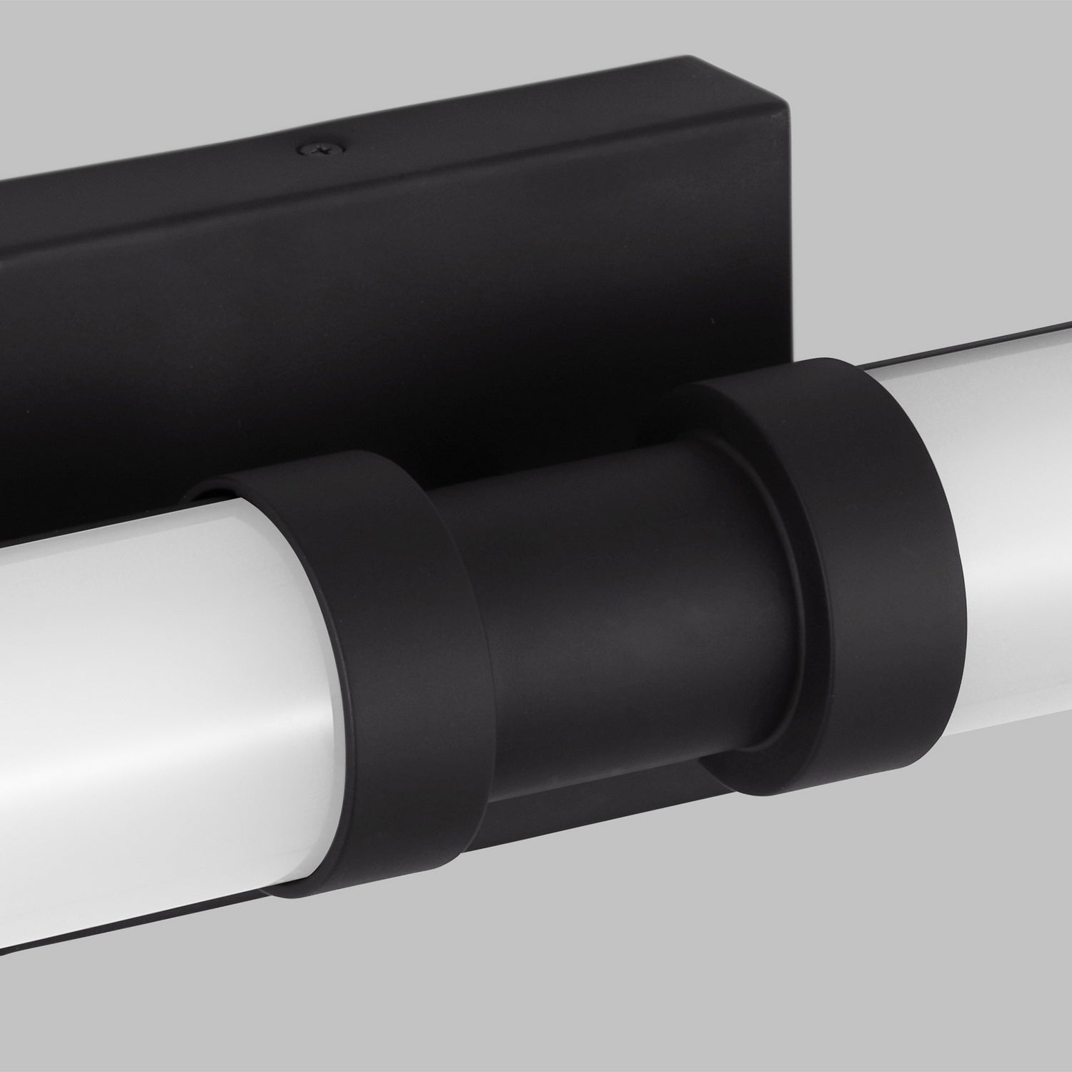 Sleek and modern, this Integrated LED bath series features a metal reflector that houses integrated LED stripes and gloss acrylic diffuser to evenly distribute light. The Sea Gull Collection Kiel one light vanity fixture in Midnight Black provides abundant light for your bath vanity while adding a layer of today`s style to your interior design.