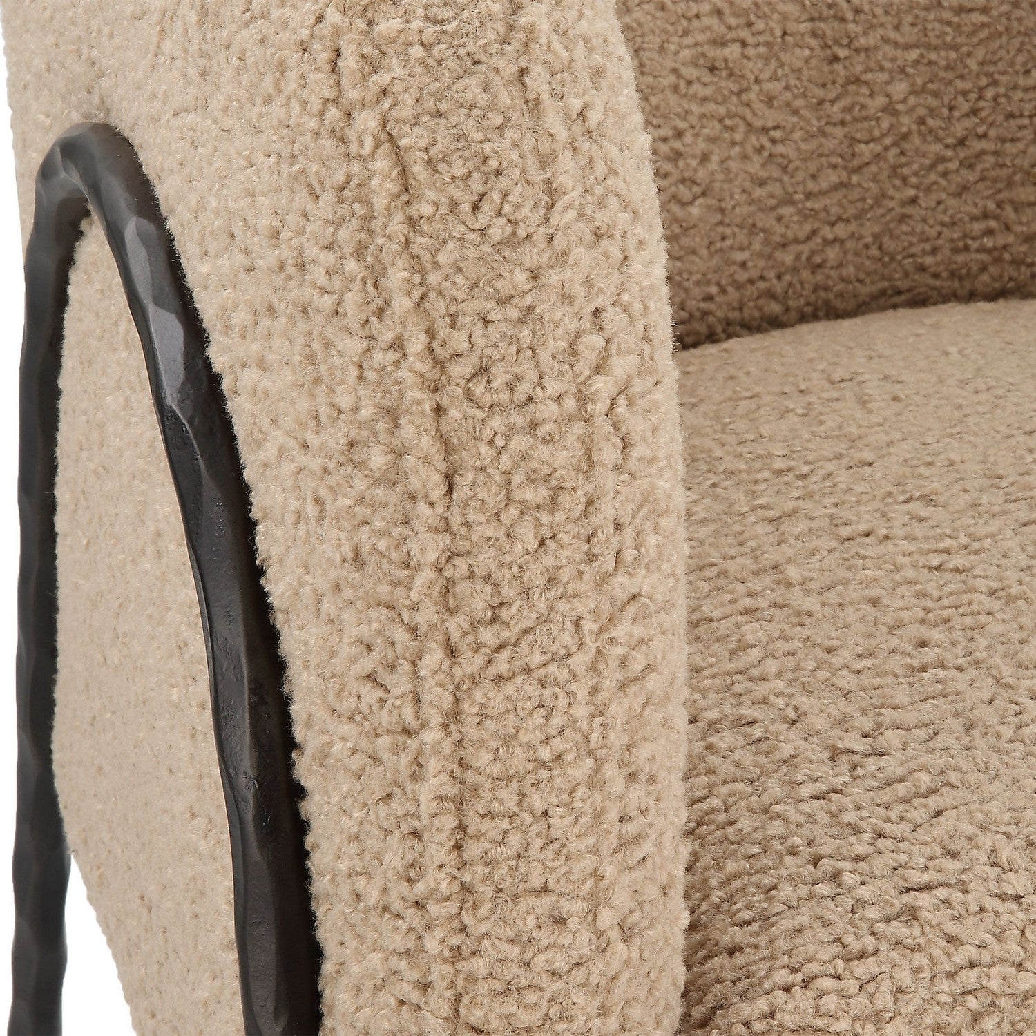 Inspired By Scandinavian Designs, This Barrel Back Style Chair Showcases Warm Latte Faux Shearling Nestled In A Curved Chiseled Iron Frame Finished In Dark Bronze. Seat Height Is 19".