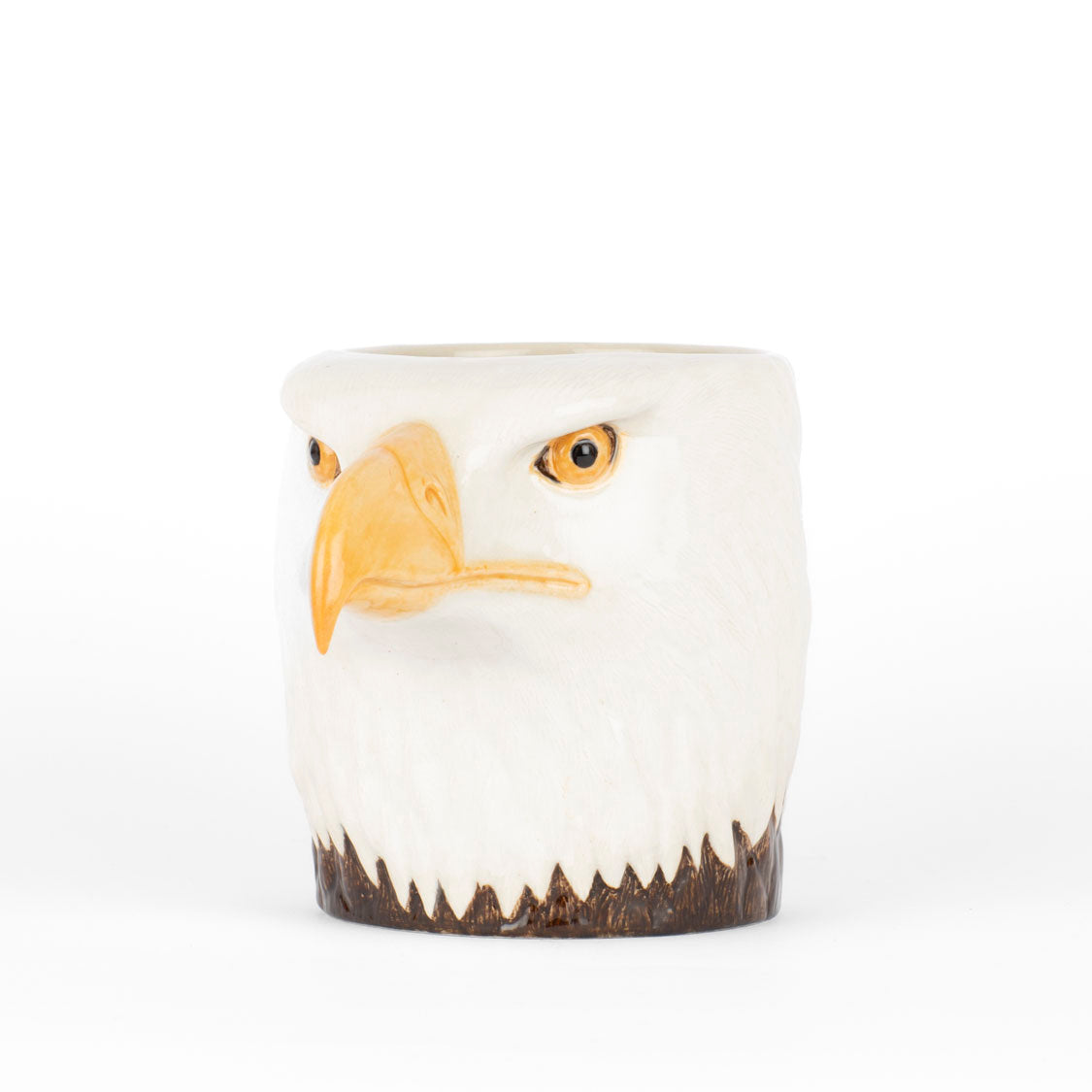 This no-nonsense Bald Eagle is on a mission to organize your writing tools! Perfect as a desk sentinel or bookcase guardian atop your favorite reads. Crafted with UK design flair and rendered in hand-painted, dishwasher-friendly stoneware. Start your ceramic animal collection with this charming 3.5"Wx4"H patriotic bird and create your own miniature menagerie!
