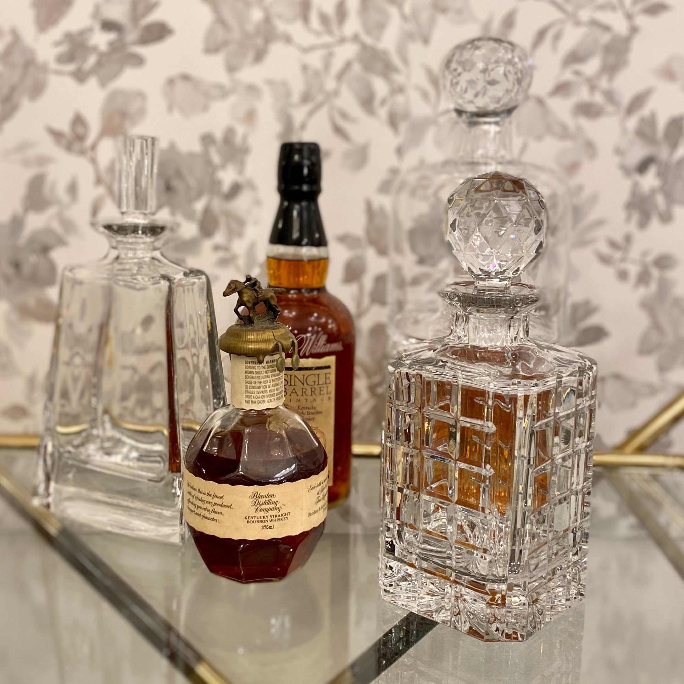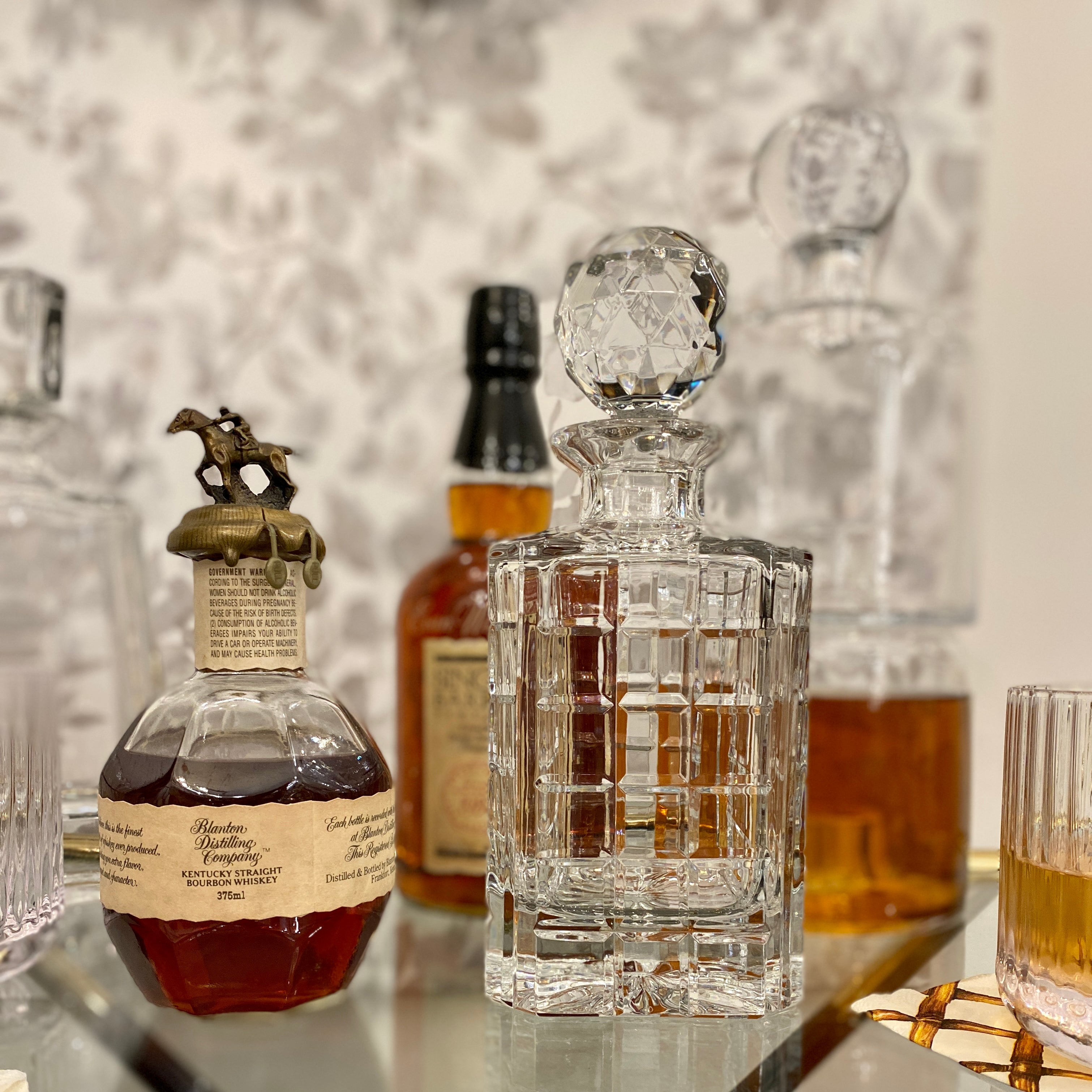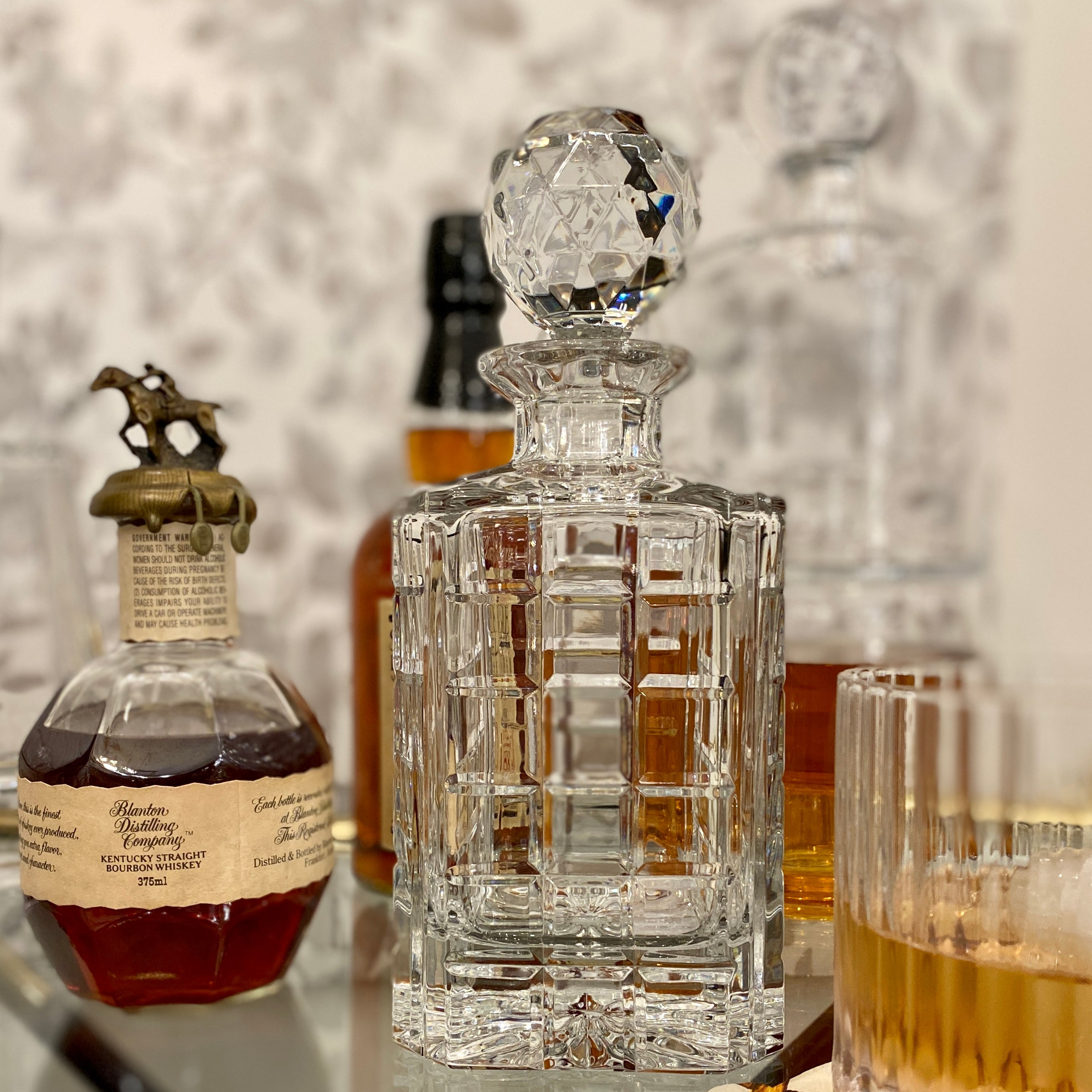 This exquisite crystal decanter provides the pinnacle of sophistication to the home bar; even connoisseurs of brandy and whiskey will be awed by its beauty. Showcase your finest whiskey in this striking piece. 4"W x 4"L x 9.25"H, holds 24 oz.