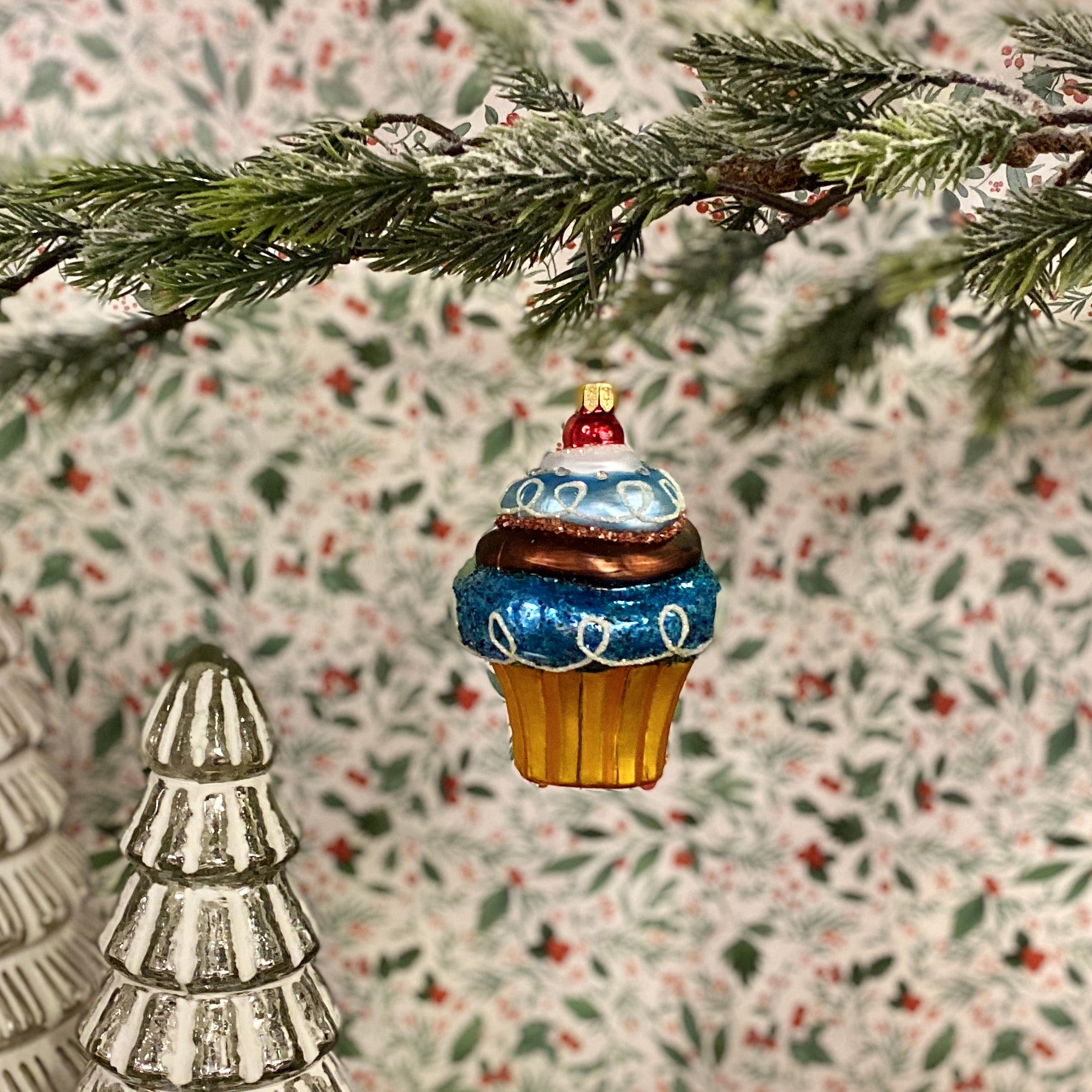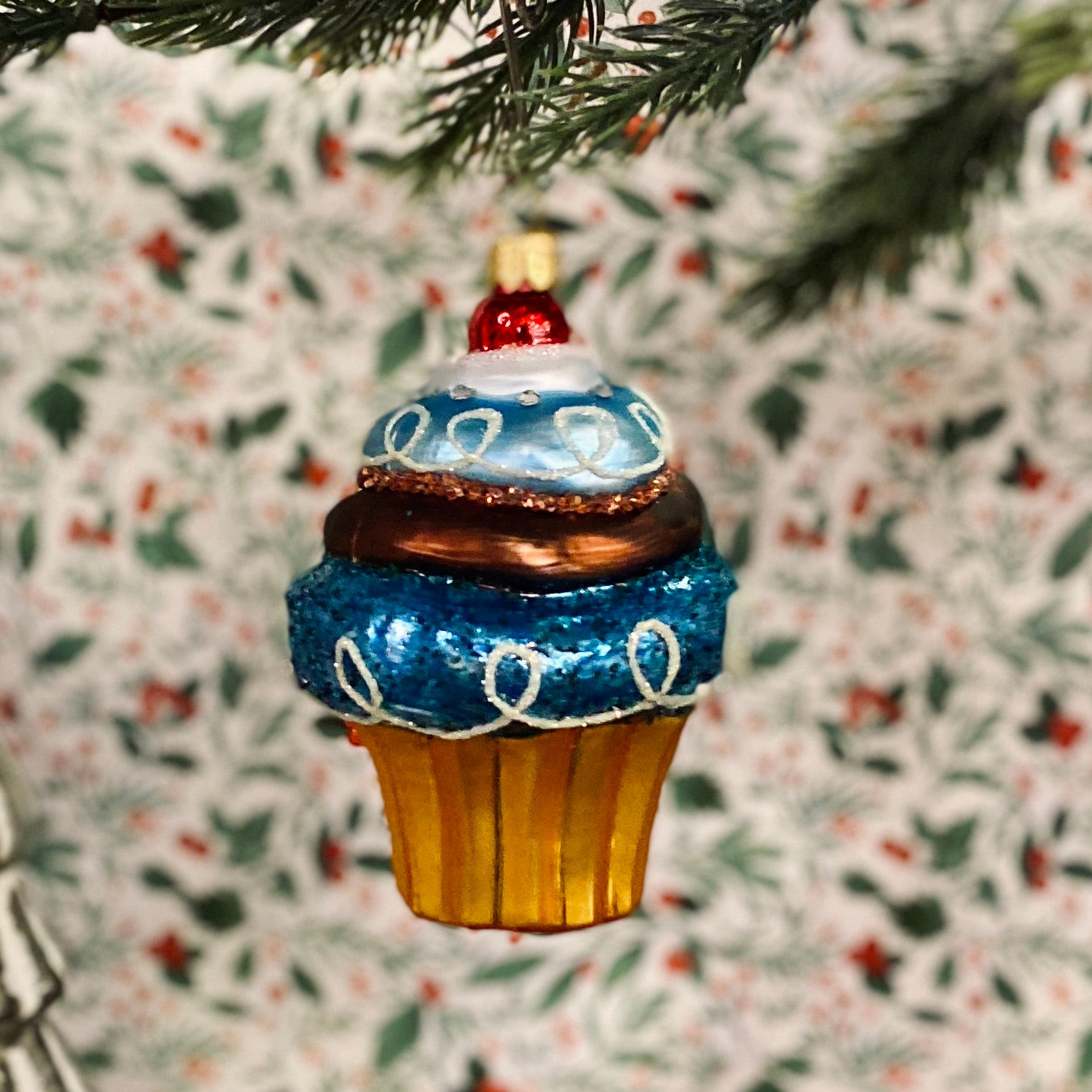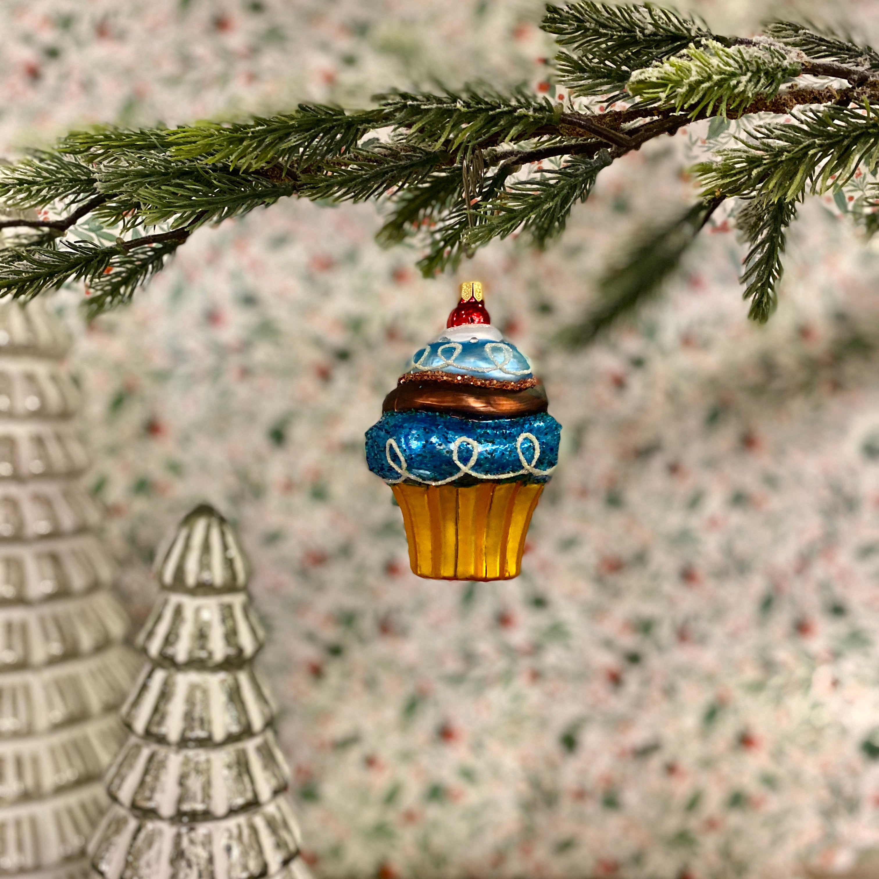 Discover the delicious treat that's sure to delight! Our Blue Delight Cupcake Ornament is hand-blown glass, giving it intricate details and making it look good enough to eat (though we suggest you don't!). Hang this yummy ornament up for all to see and enjoy! 4"Hx3"W