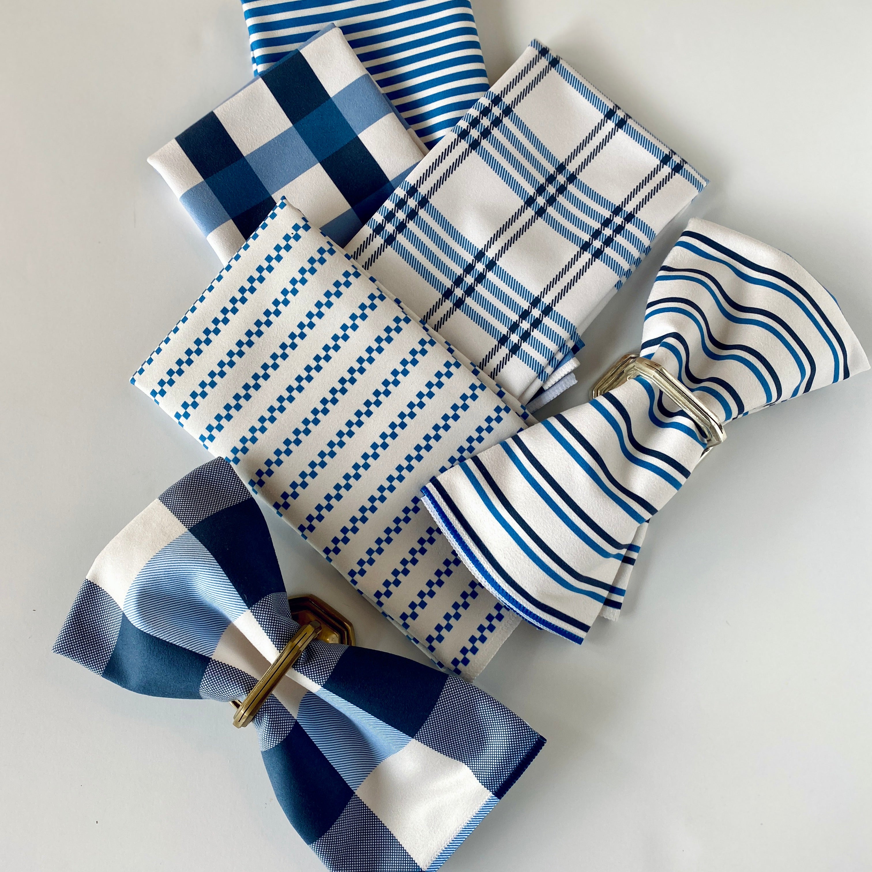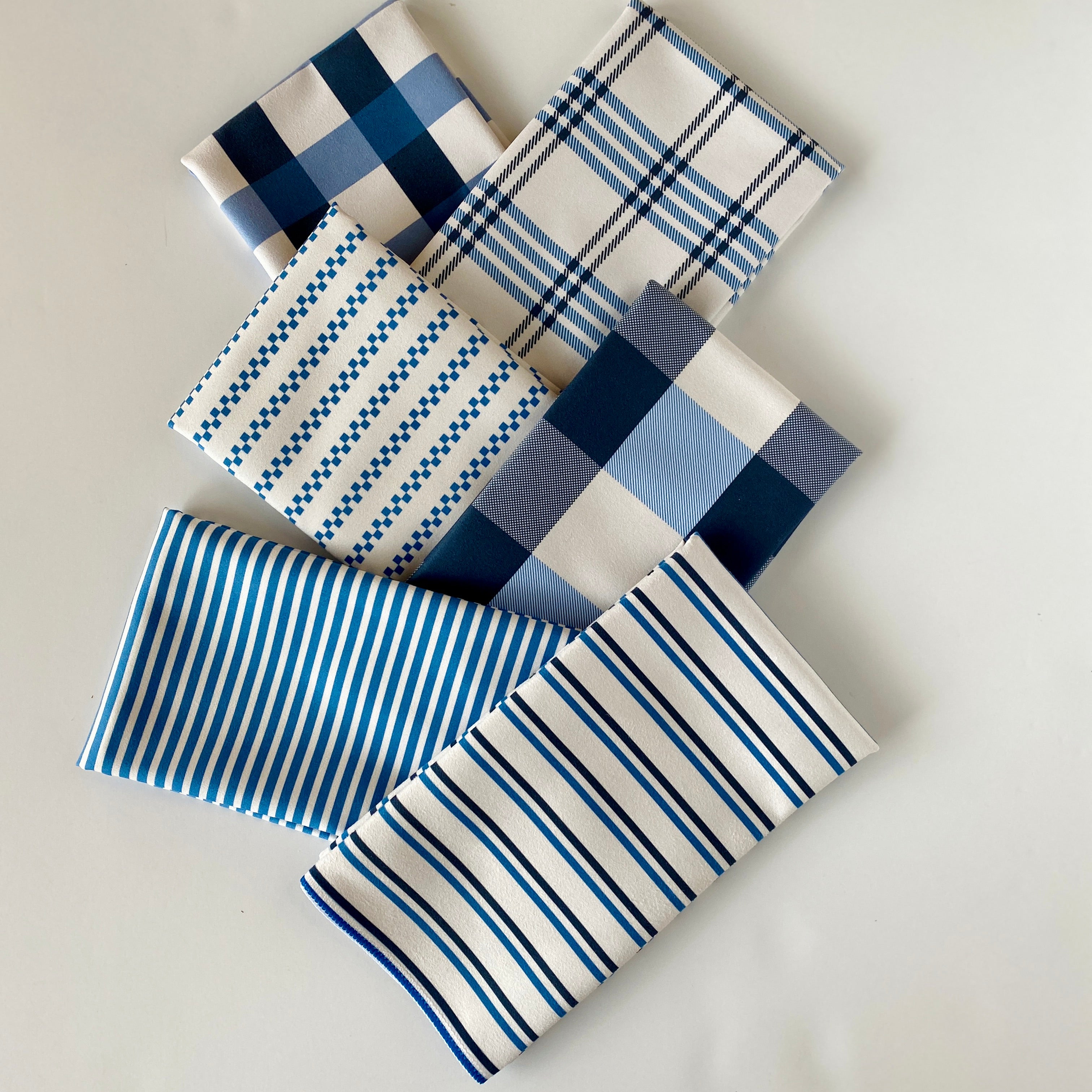 Add a delightful dose of beachy vibes to your dinner party with our Coastal Cottage Napkins. Each napkin has a different coordinating fabric. These super-soft and durable cloth napkins are made from recycled plastic bottles and dry quickly – so you can party all night without the worrying about the mess! Dance around the dinner table knowing these napkins hold up to 7x its weight! Saving the planet using cloth napkins and less paper and looking good doing it! They wash great and come out of the dryer looking new! Set of 6, each napkins a different pattern, 19x19, single sided print.