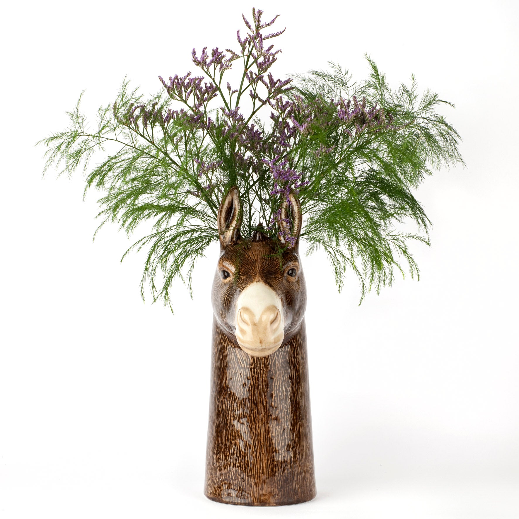 This guy is as stubborn as a mule! He's all about holding your flowers and won't take no for an answer unless he's chilling on a bookcase looking cute. Designed in the UK; hand-painted stoneware that is dishwasher safe. Collect all our ceramic animals for a farmhouse of your own! 6”Wx11"H
