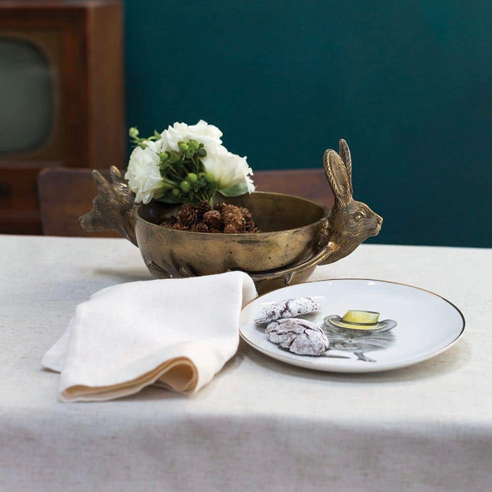 The Fox and the Rabbit adorn this classic bowl with a twist. Featuring a stunning matte brass finish and extraordinary detail, the Figurine Handle bowl is versatile enough for every holiday design. Due to the hand-cast nature of this product each piece will slightly vary. 7.5" x 3.25" 13.5 x 13.5 x 7.0