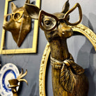 These whimsical metal animal head mounts are adorable by themselves or make a statement in a grouping. Hang over a fire place or in a children's room or playroom. Perfect for a man cave, library or game room. Margie is sure to turn some heads. She is a doe who knows it all! Metal with a vintage brass finish. Due to the hand-cast nature of this product each piece will slightly vary. Weight 15.40 lbs., Dimensions 9.25 x 11.5 x 26.75.