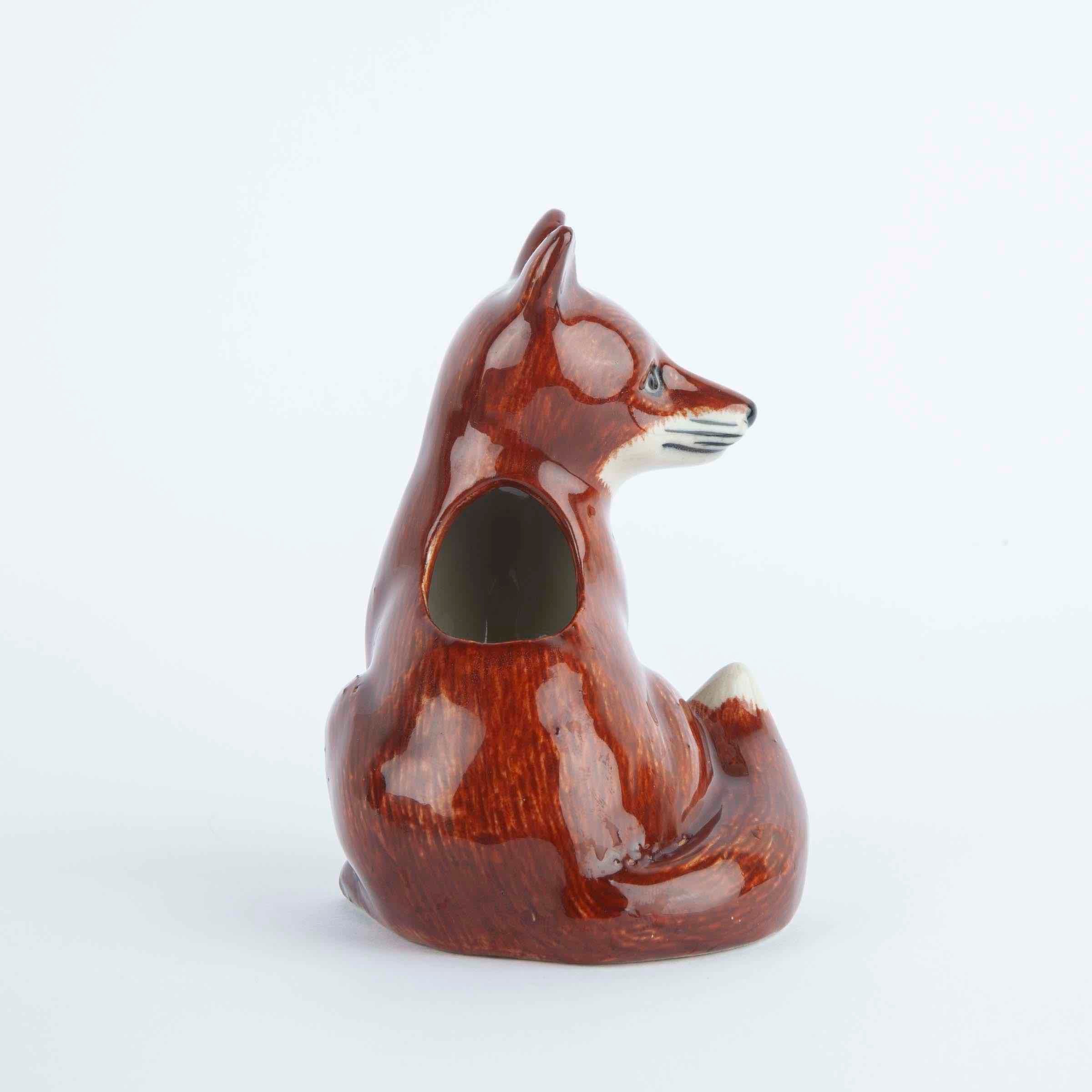 Don't be afraid of this little fox. He is just here to look cute and hold your flower clippings from the yard. He loves to hang out on a shelf or window ledge when he's not holding flowers. Designed in the UK; hand-painted stoneware that is dishwasher safe. Collect all our ceramic animals for a farmhouse of your own! 2.5”Wx3.25"H