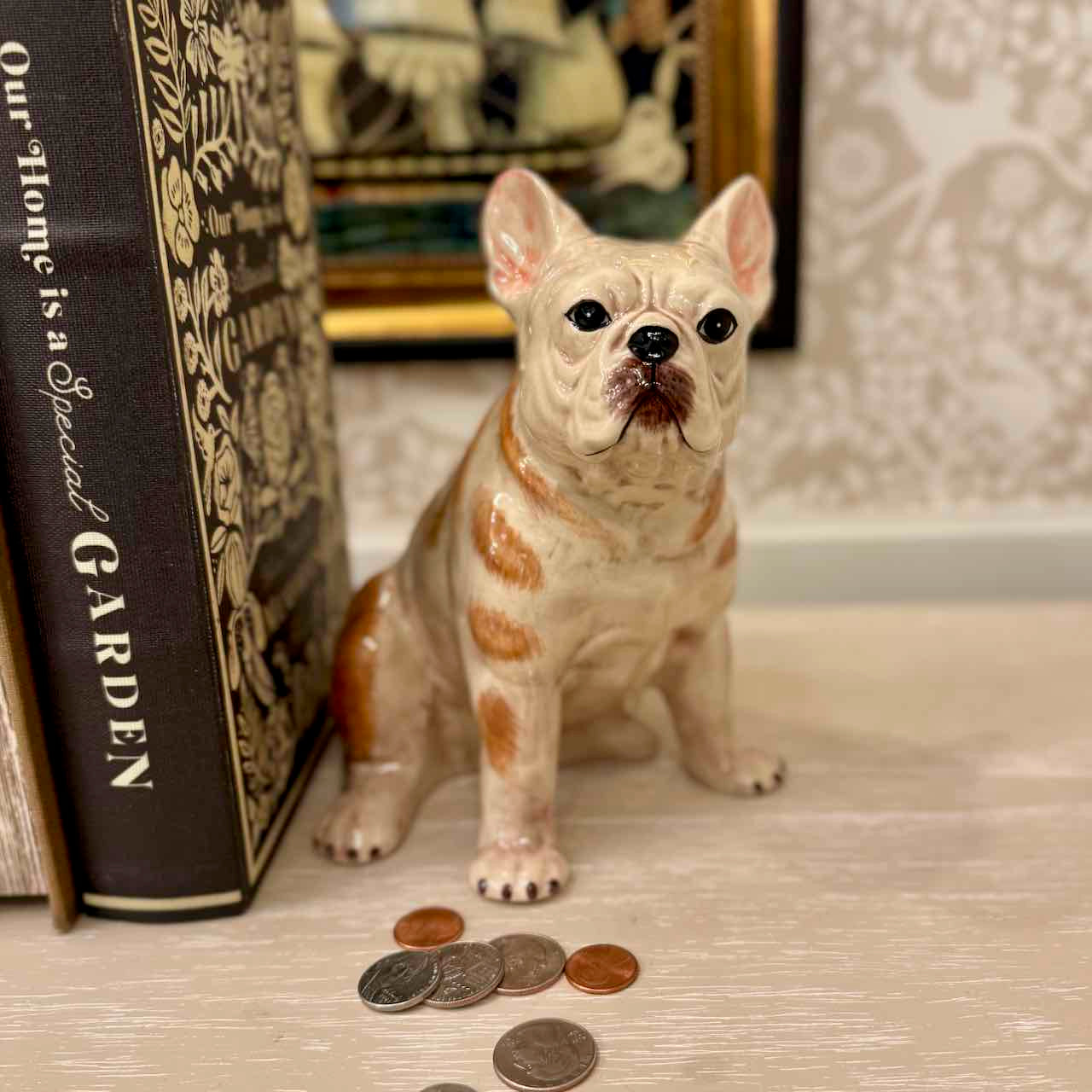A penny saved really counts! Check out the charming details on this favorite breed. Bulldogs are adorably quirky—so ugly they’re cute! That unforgettable expression is pure gold. Crafted by our talented ceramic artist, this hand-painted piece captures the breed’s unique personality. Each piggy bank is a little different in color, making yours truly one of a kind. Measures 6" wide by 8" tall.