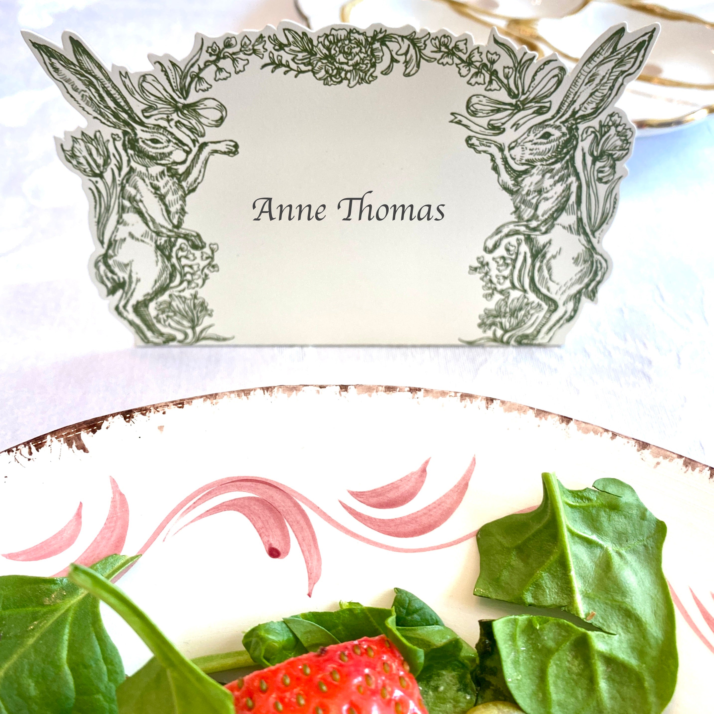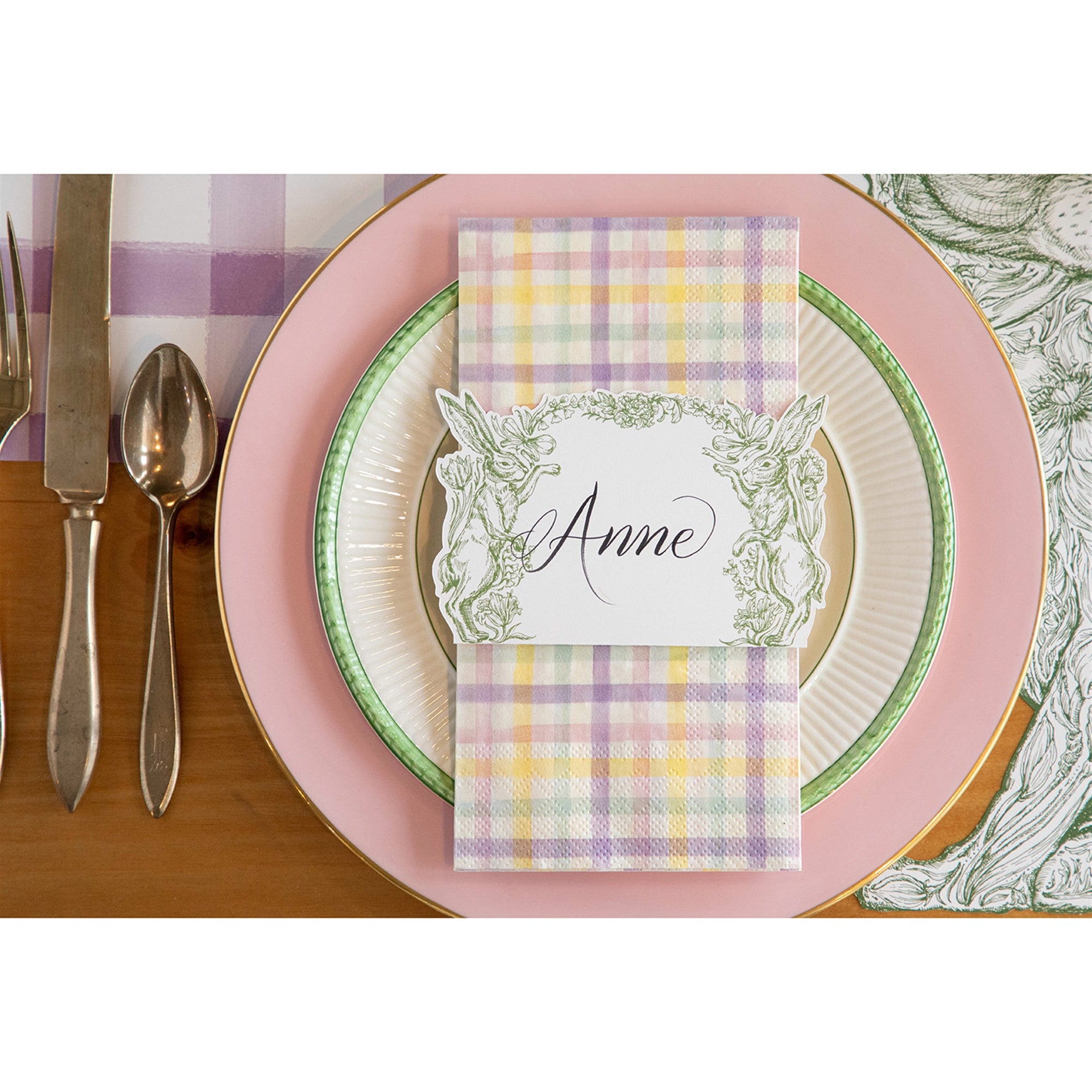 These hares are the perfect presenters for guests of honor, delightful dishes, and more—how will you use the Greenhouse Hares Place Card on your table this spring? Fresh details and ample writing space make this card a delight from brunch to cocktails, and every occasion in between. Mix and match with our Spring Plaid Napkins and Dark Green Stripe Table Runner. Pack of 12. 5"Wx4.4"H