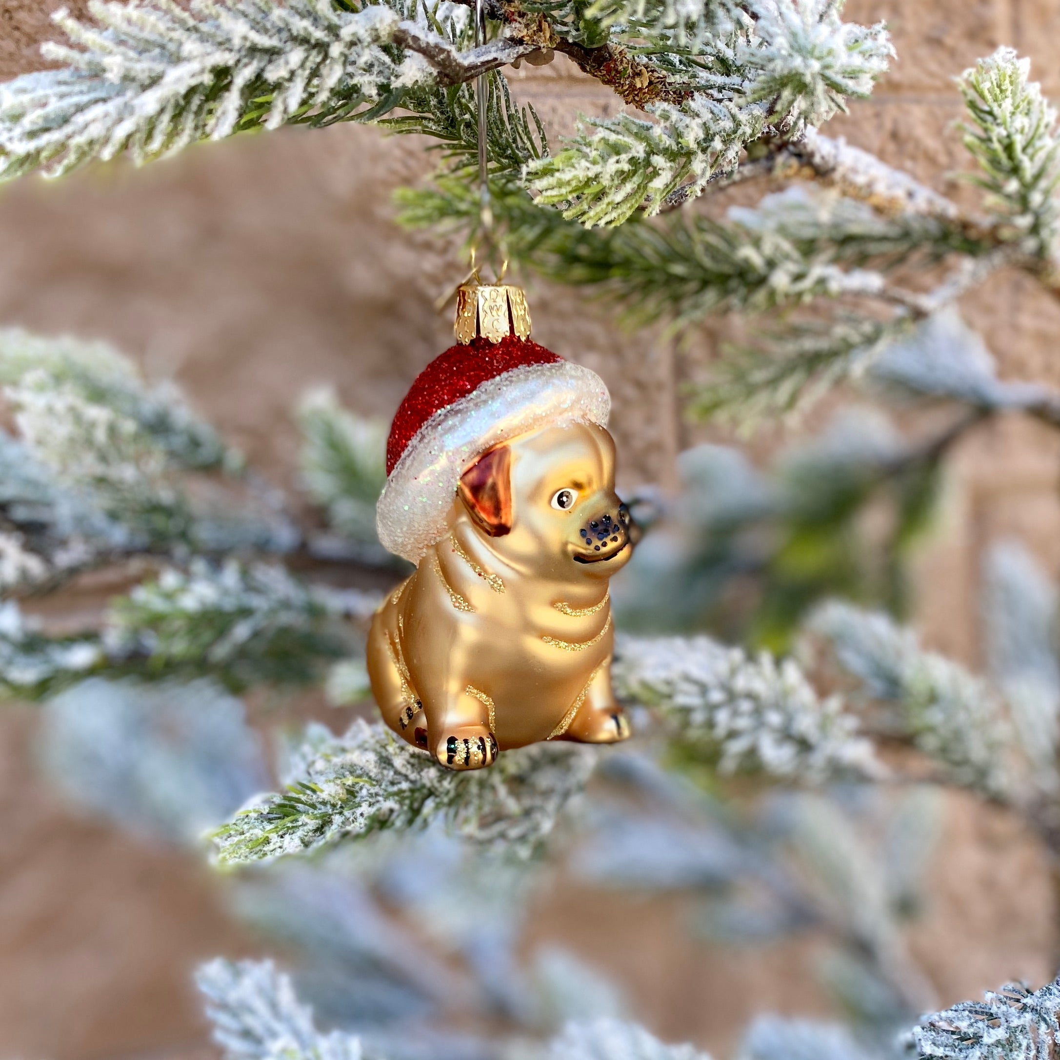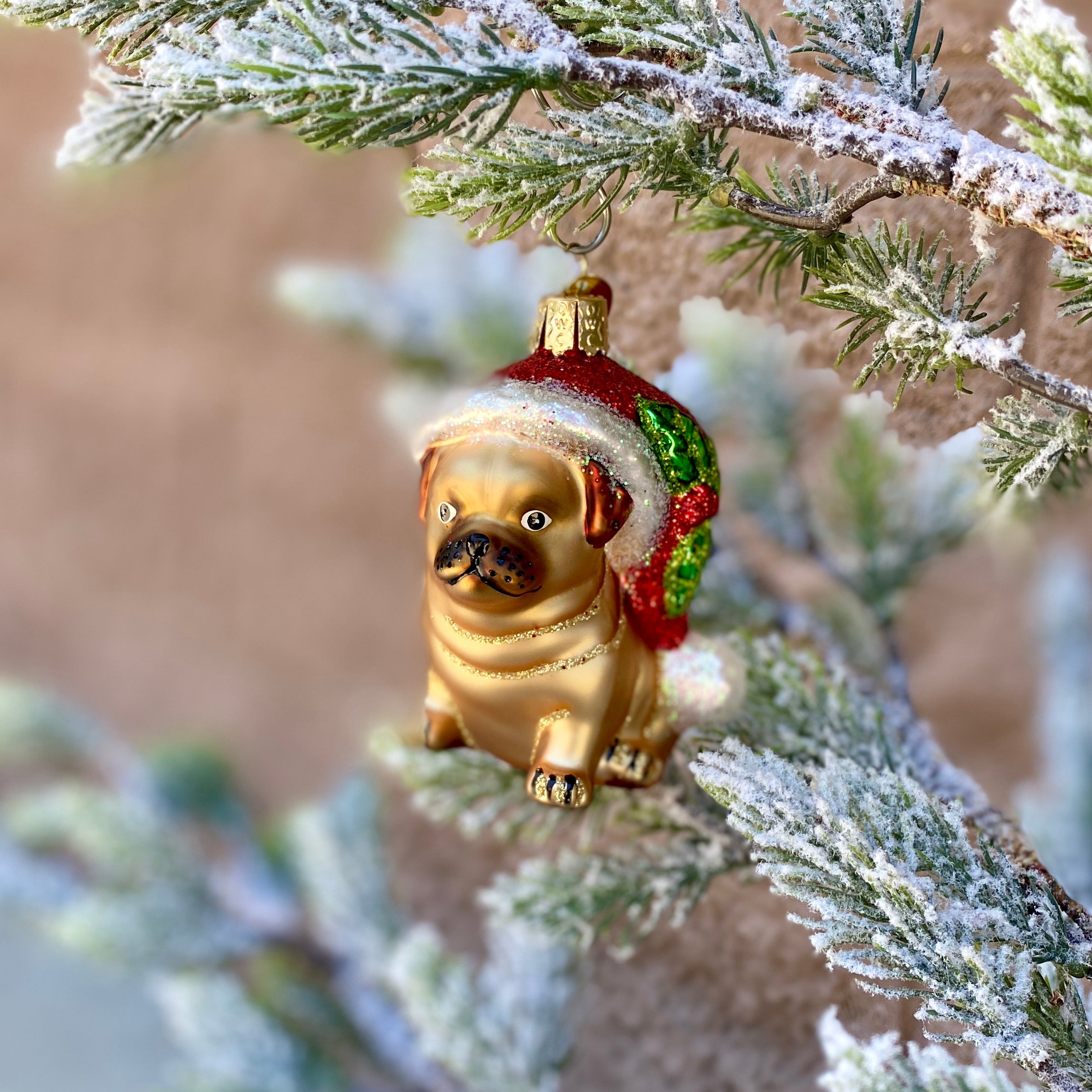 This Holly Hat Pug Ornament is the perfect way to show your love for your four-legged friend! With a Christmas design for extra festive cheer, you'll be able to show your affection year-round. Add some waggling tails and shiny coats to your holiday décor today! 3.25"H X 1.75"L X 2.25"W