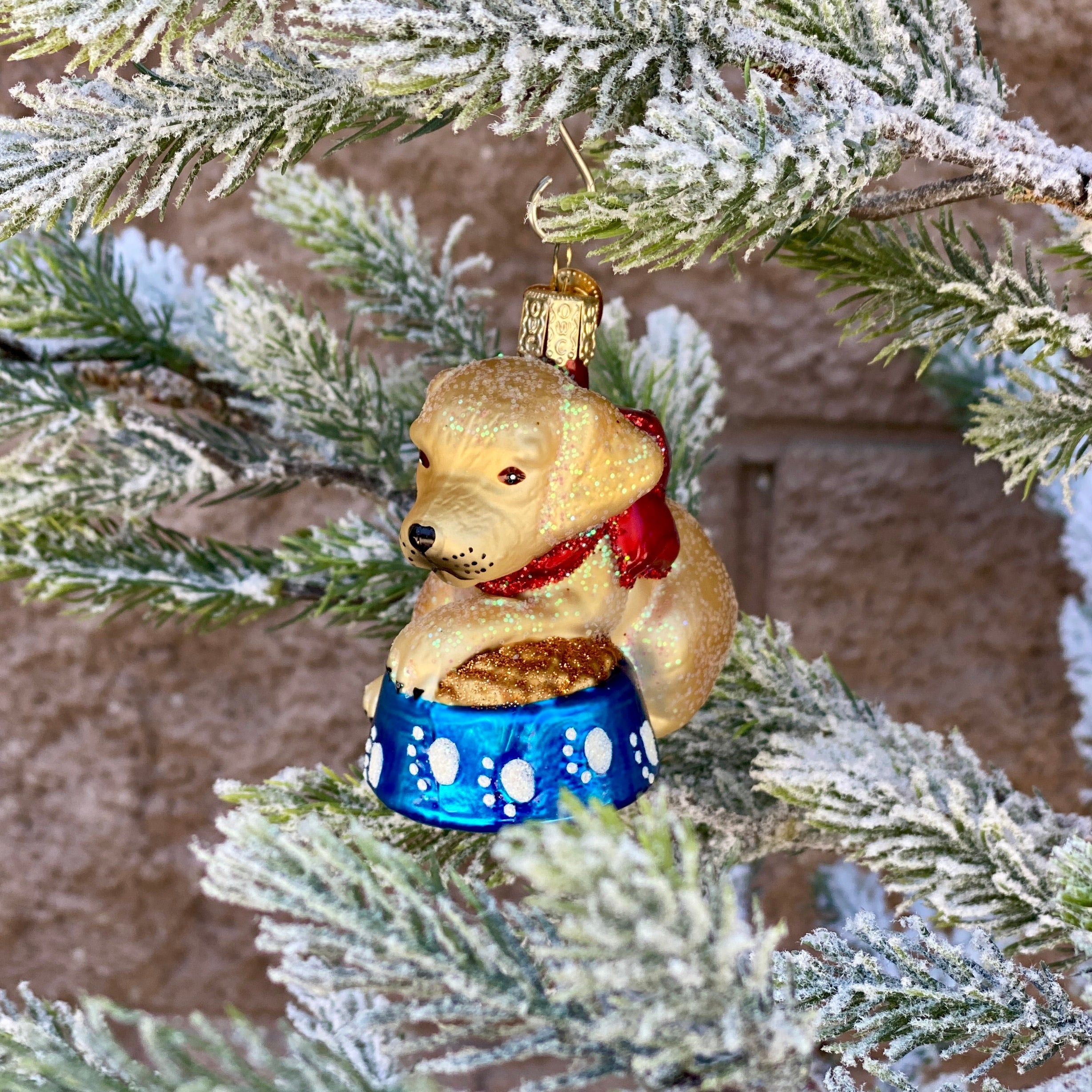 Sprinkle a little pup love onto your tree this season with this delightful Labrador Pup Ornament! This precious pooch is ready to pounce with puppy playfulness and bring joy to all who spot it. And don't worry, no collars necessary — they've already got a bow to impress! 2.75"H X 2"L X 3"W