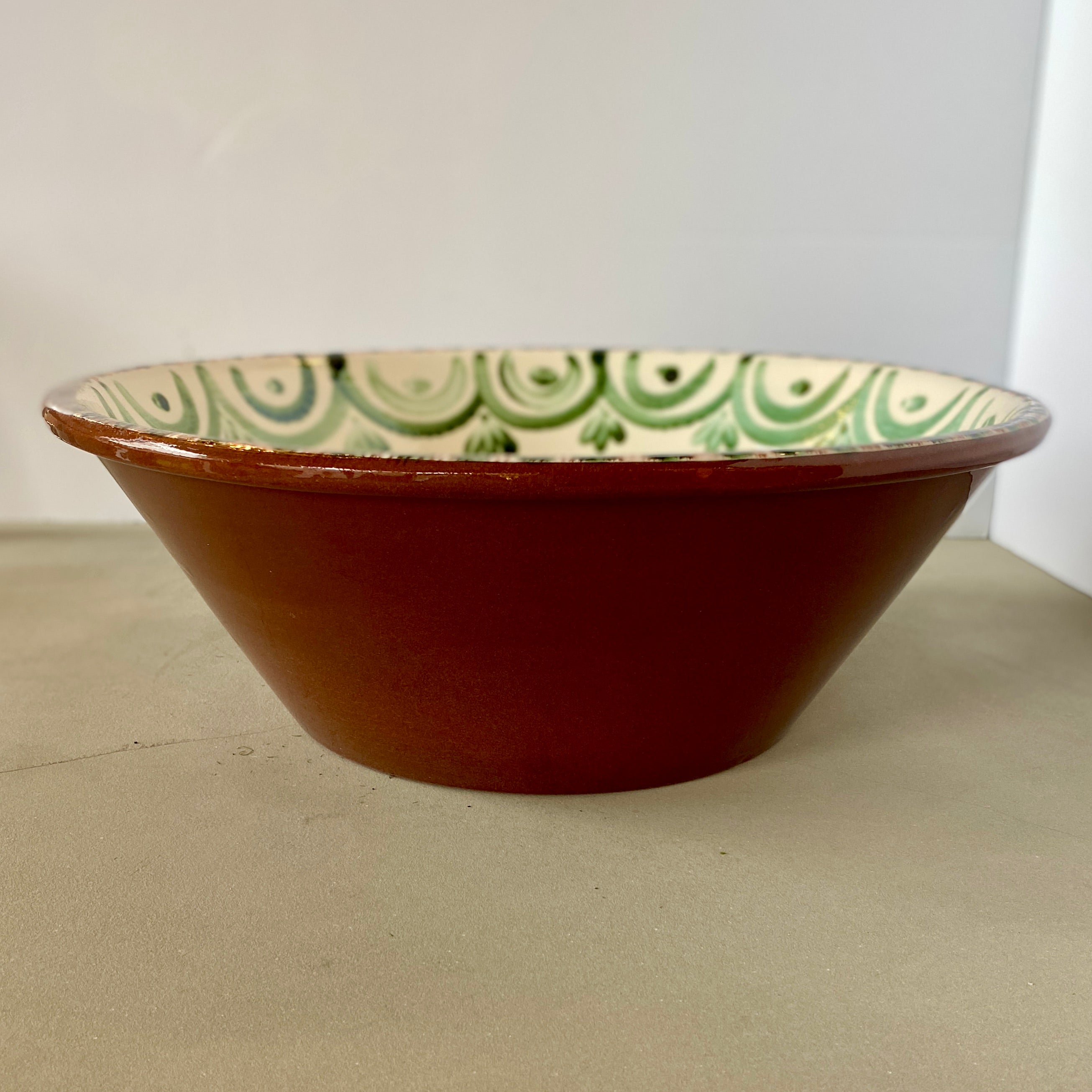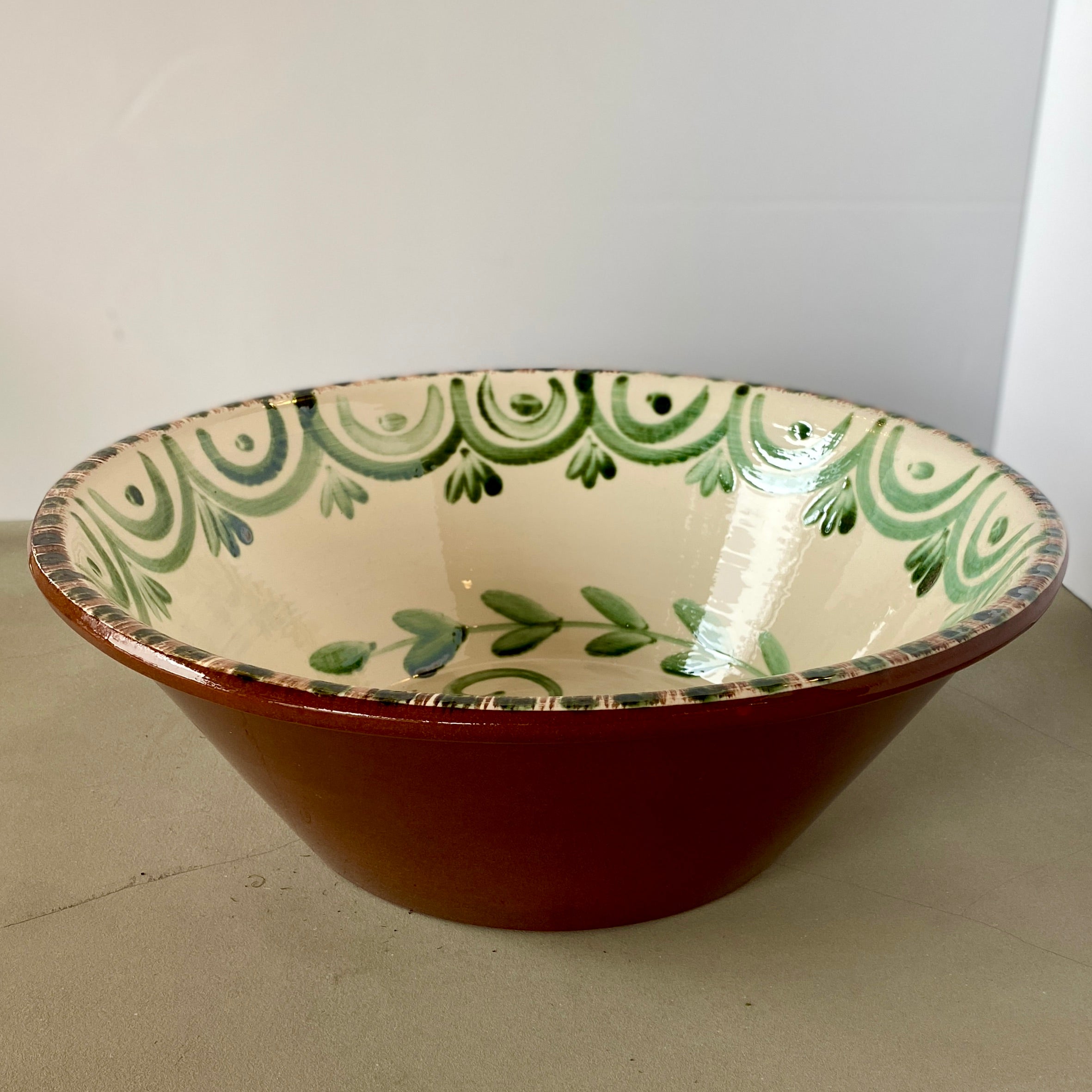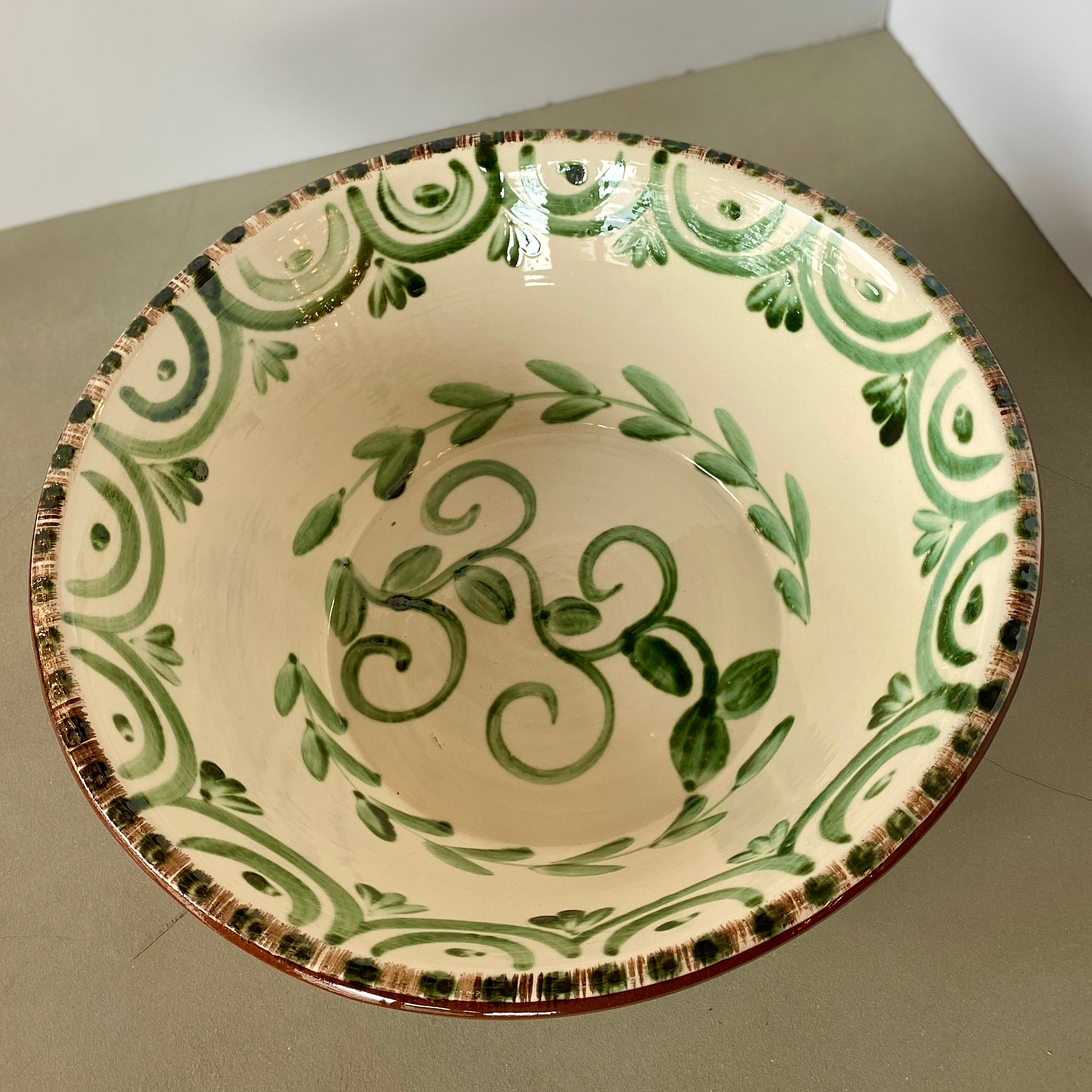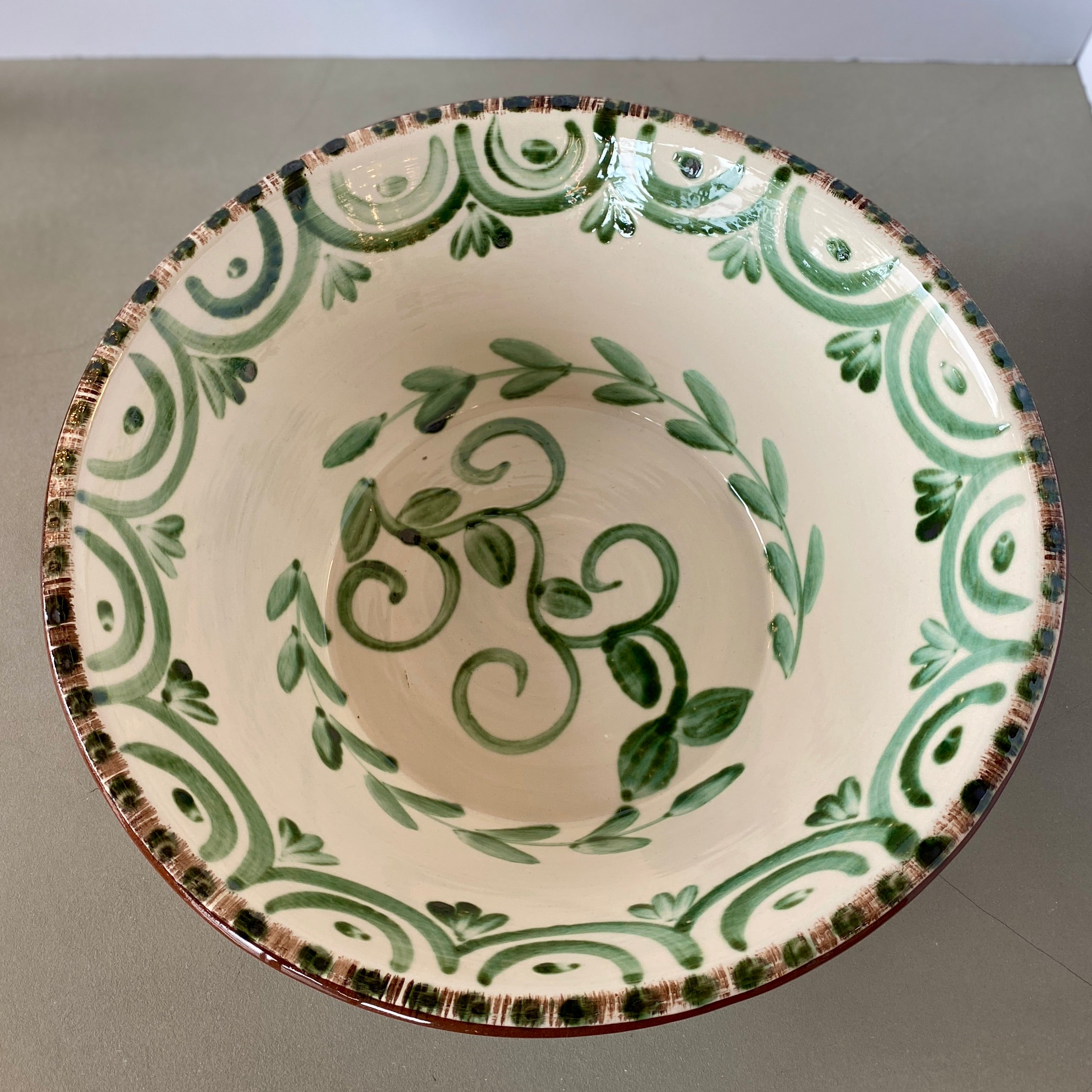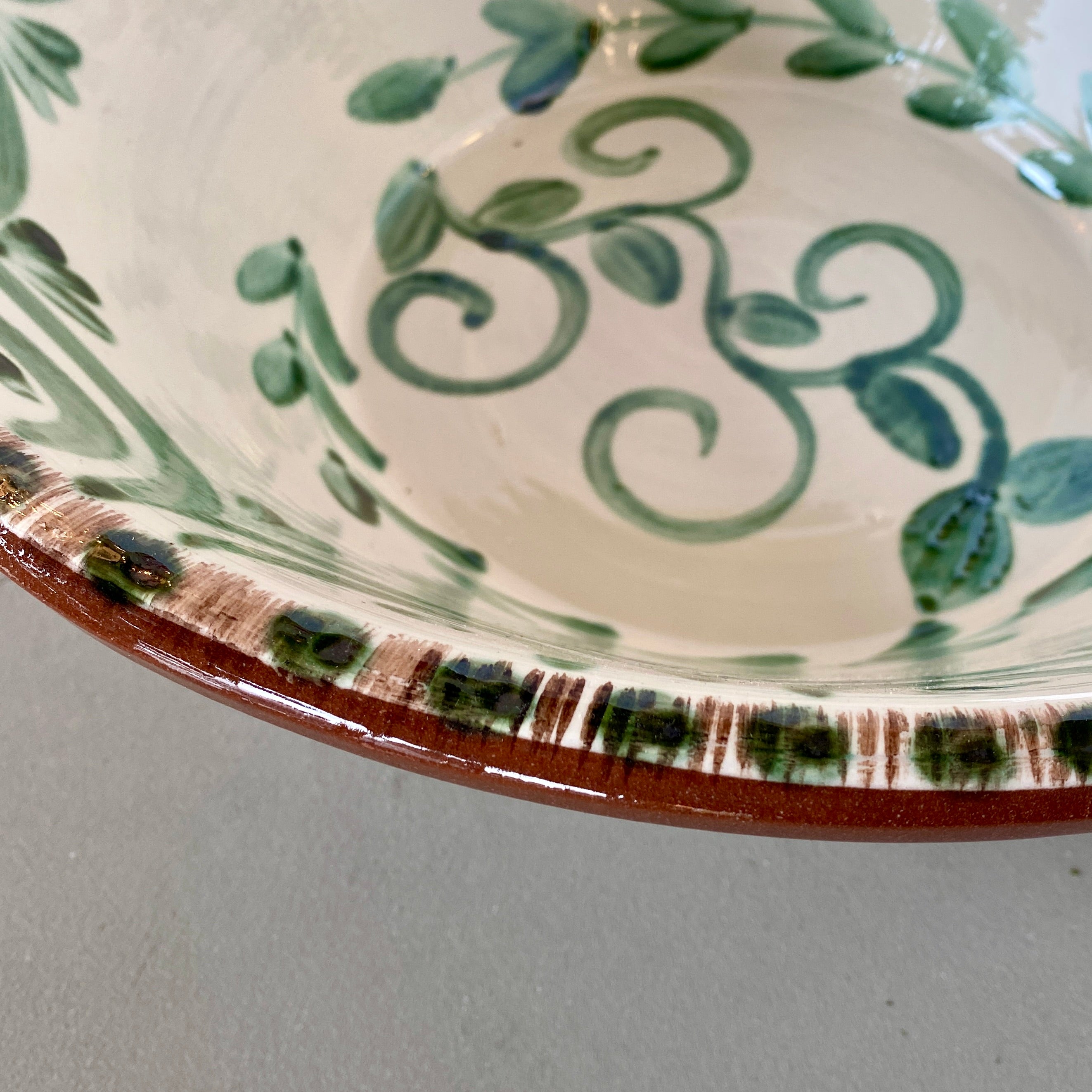 A new take on an old tradition. We are excited about the Luzia Collection of hand-painted dishes. The hand-painted bowls are influenced by the beautiful antique Portuguese and Spanish Talevera. The green and white colors add to the charming floral designs. Microwave and Dishwasher Safe. Made in Portugal. 17.5"Wx5.75"H