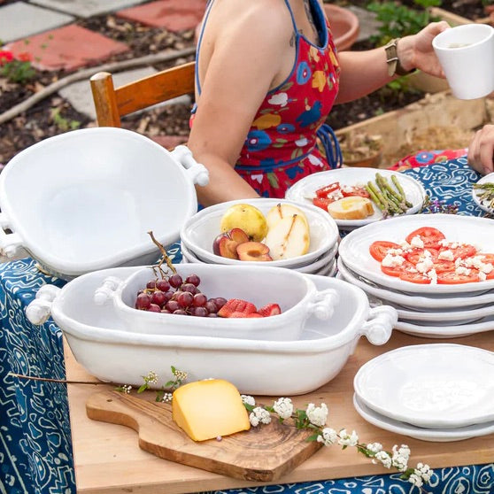 This classic ceramic casserole is a standout in the Parker Casserole Collection - Small. Exquisite craftsmanship and aesthetic details make it an elegant addition to any table. Whether you are heating it in the oven or the microwave, it is oven-safe up to 350 degrees and dishwasher-safe for easy cleanup. Made in Italy, this casserole is sure to impress. 7.25"L x 12.5"W x 3.75"H, 1.5 qts.