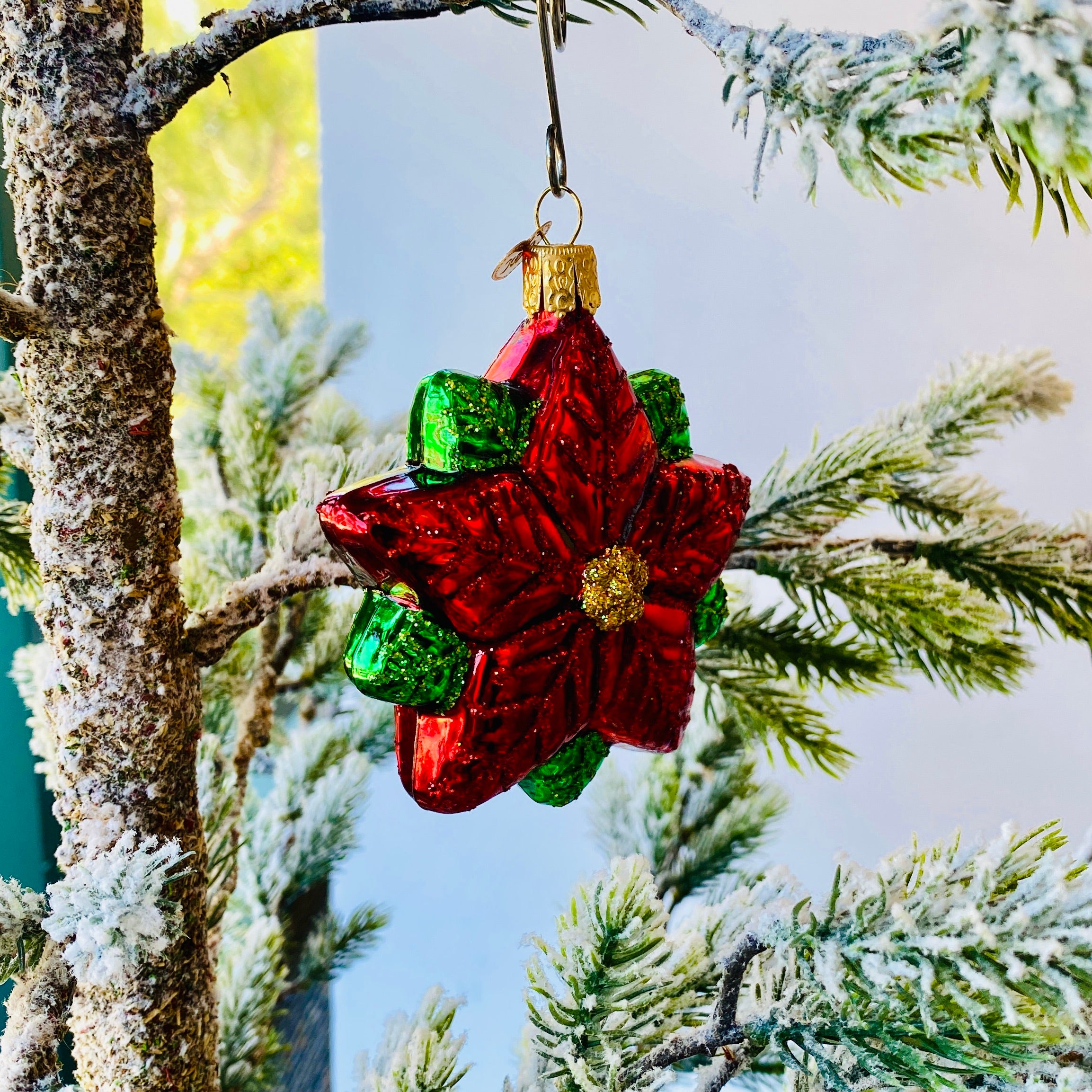 Poinsettias have long been associated with Christmas due to their miraculous appearance one Christmas Eve, while Star ornaments represent the Star of Bethlehem seen that night. This beautiful glass Poinsettia Star ornament combines these cherished holiday symbols. 3.75"H X 3.25"L X 1.25"W