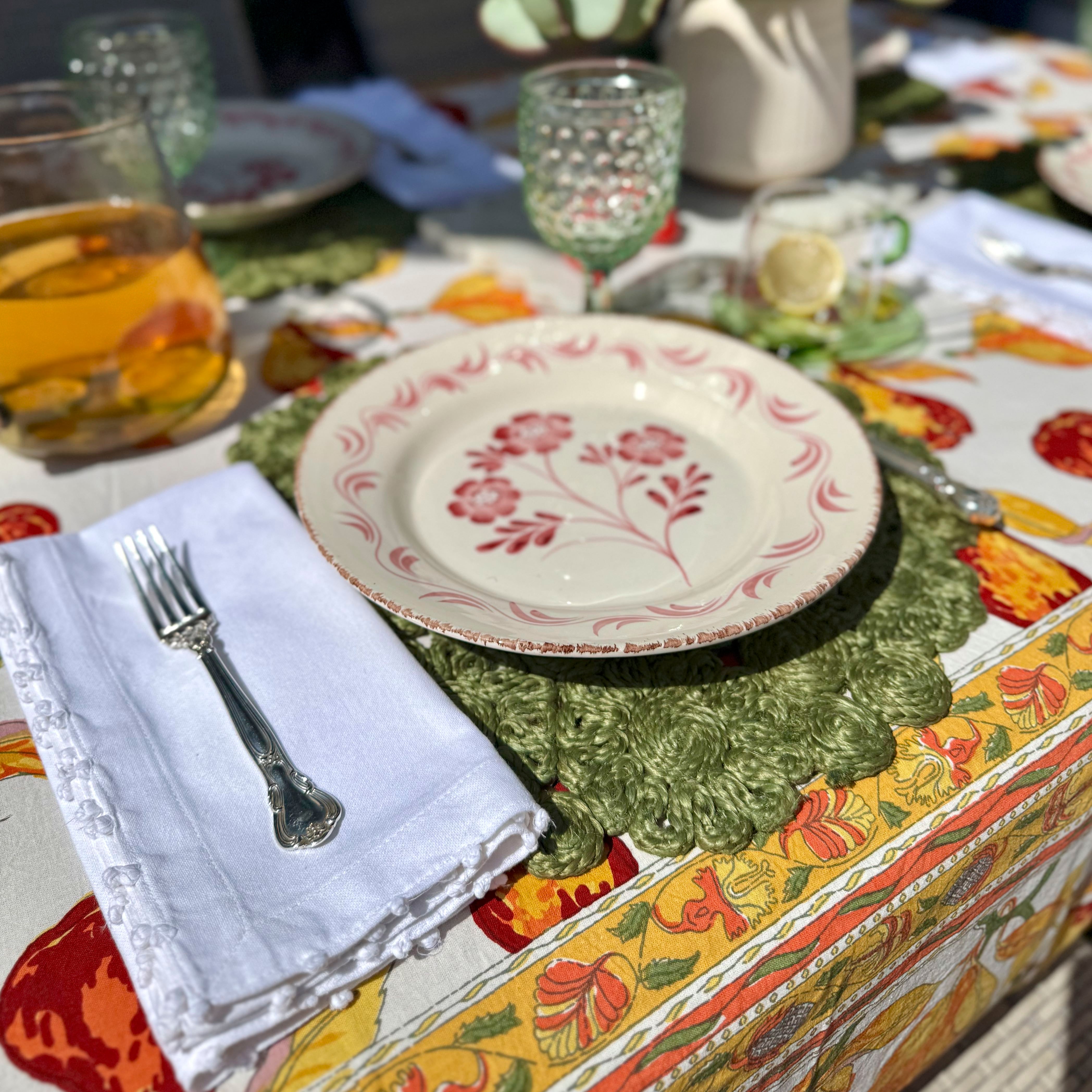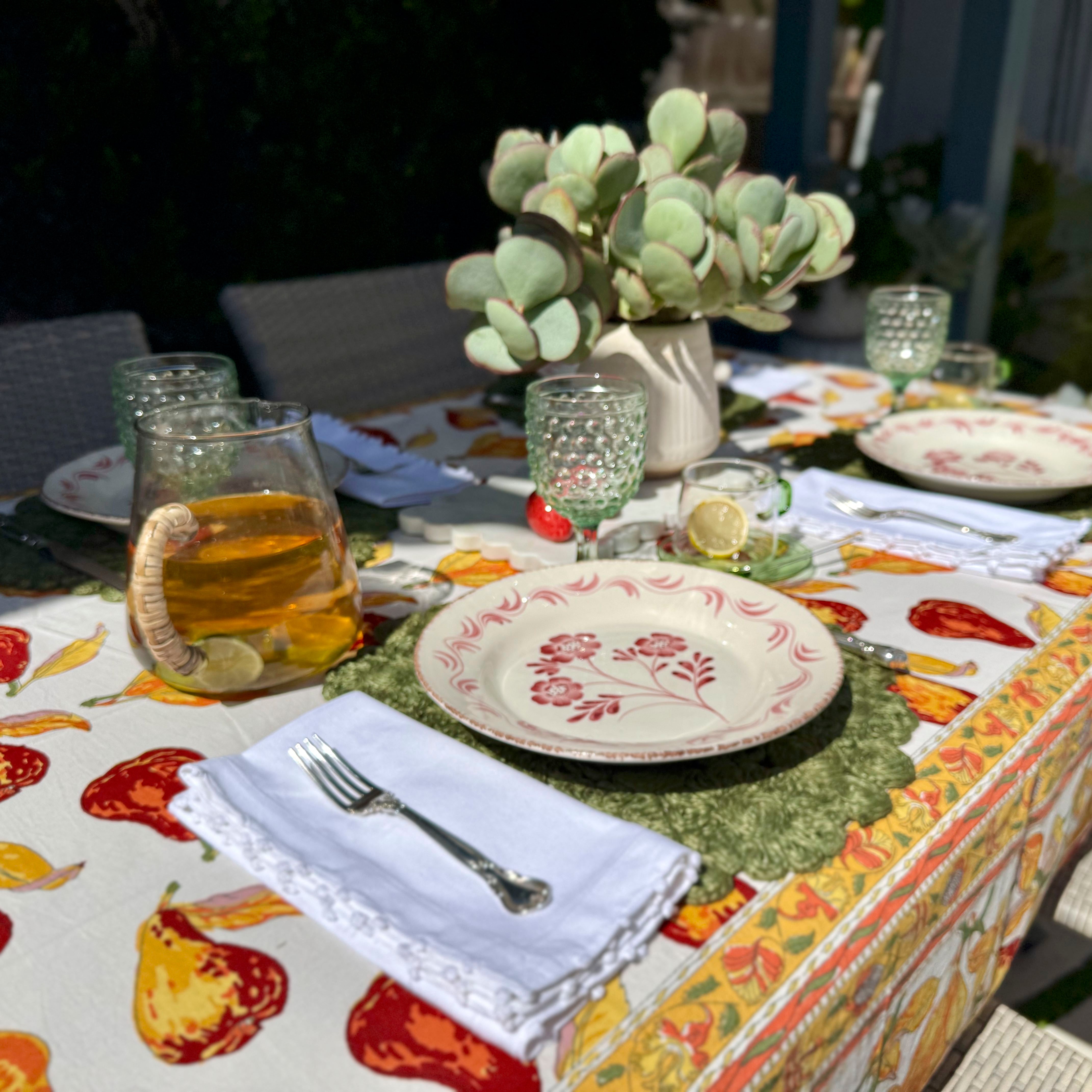 Elevate any dining experience with these exquisite cloth napkins, adorned with charming pom pom borders for a touch of sophistication. Whether you choose to press them for a traditional gathering or embrace the effortless shabby chic look, these napkins are a must-have for any lavish table setting. 100% Cotton. Made in Portugal. 20"Wx20"L. Set of 8.