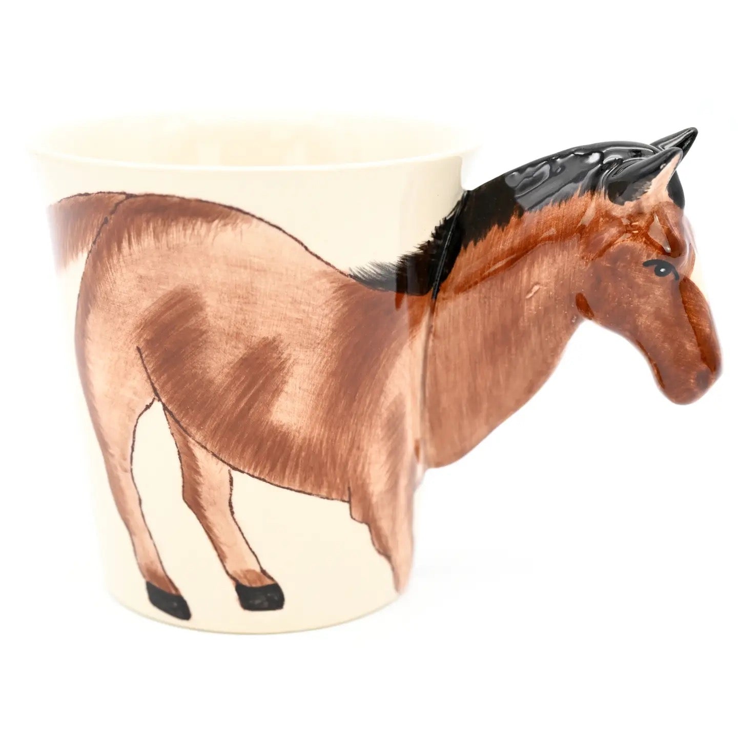 This charming hand-painted ceramic mug is ideal for sipping your favorite coffee or tea, and doubles as a quirky spot to hold pencils, pens, or small essentials in your kitchen or home office. Perfect for animal lovers or anyone who adores fun and unique ceramics. Safe for both dishwasher and microwave use. Measures 5.4"L x 3.5"W x 4"H and holds 10 oz.