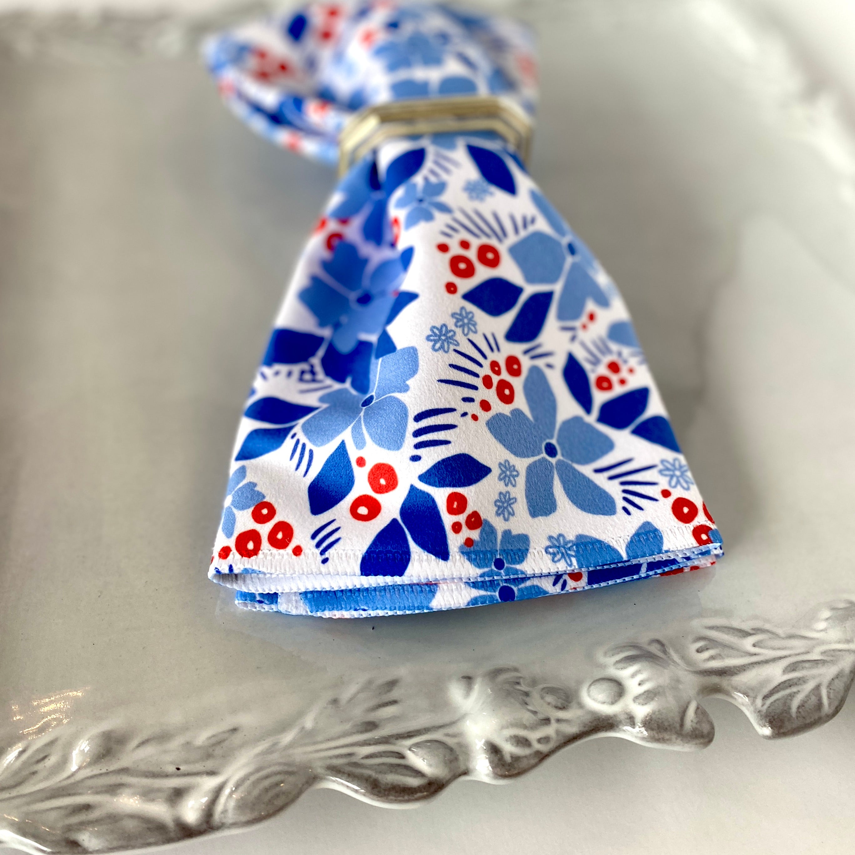 Add a delightful dose of summer vibes to your dinner party with our Summer Flowers Napkins. These super-soft and durable cloth napkins are made from recycled plastic bottles and dry quickly – so you can party all night without the worrying about the mess! Dance around the dinner table knowing these napkins hold up to 7x its weight! Saving the planet using cloth napkins and less paper and looking good doing it! They wash great and come out of the dryer looking new! Set of 6, 19x19, single sided print.