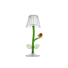 This delightful mouth-blown tealight draws inspiration from snails and leaves. Ideal for any season, it adds a whimsical glow to your outdoor dinners with its gentle, flickering light. Measures 4" wide by 9" high.
